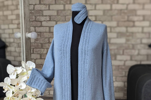 В основном, такие модели вяжут обычной лицевой гладью, пряжей, в составе которой есть мохер, и спицами большого размера.
