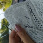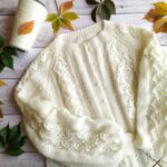 Все просто… Реглан сверху с цельновязаной планкой, круглая горловина, азиатский росток, прямой силуэт. Начинаю вязание от воротника – горловины, спицы №3, резинка 1х1. Далее перехожу на ажурные узоры.