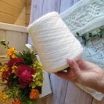Для этой модели у меня есть шикарная итальянская бобинная пряжа, артикул “Fluffy”, 380 м/100г. Состав: 78% пух мериноса extrafine, 22% ПА.