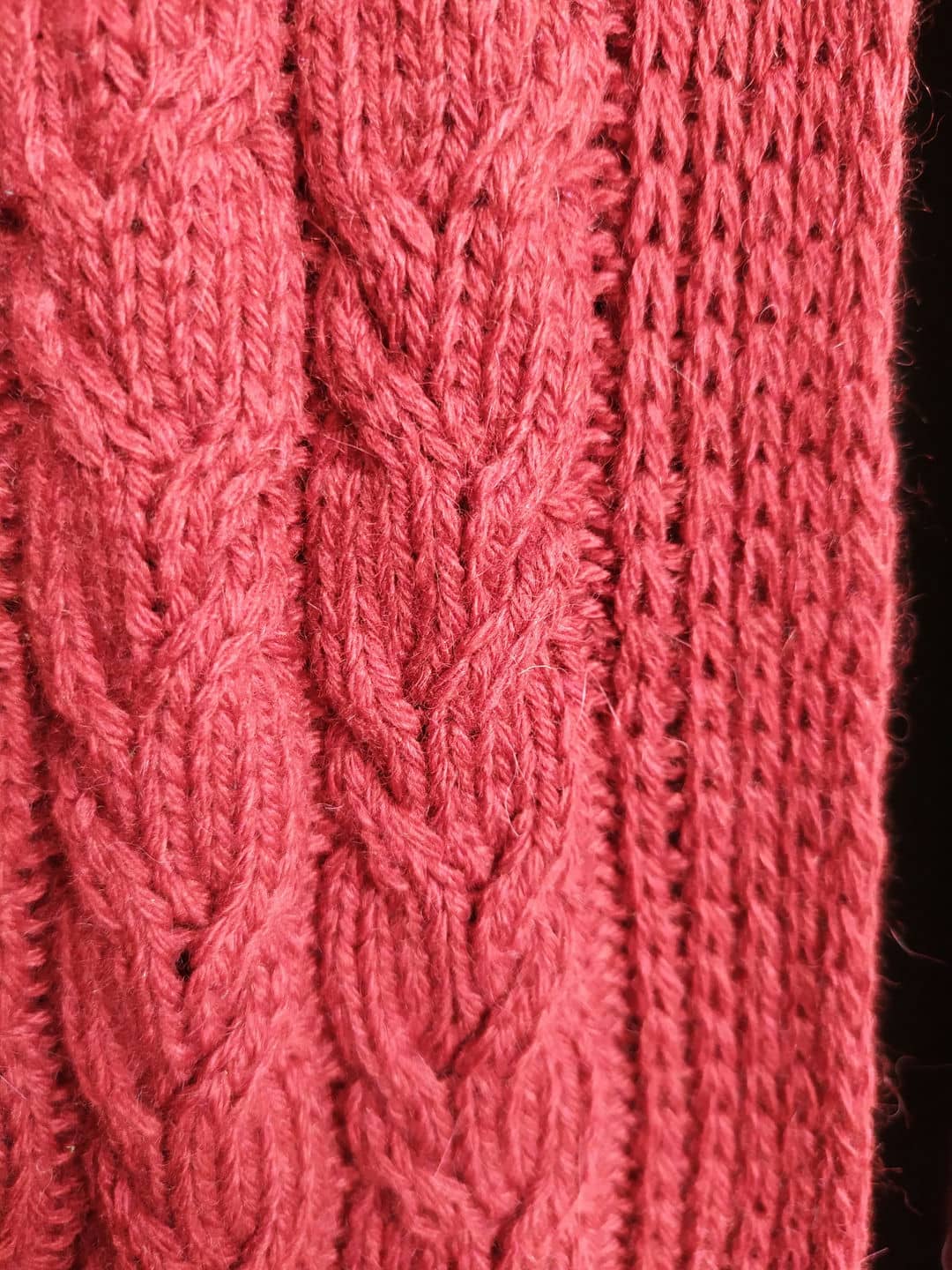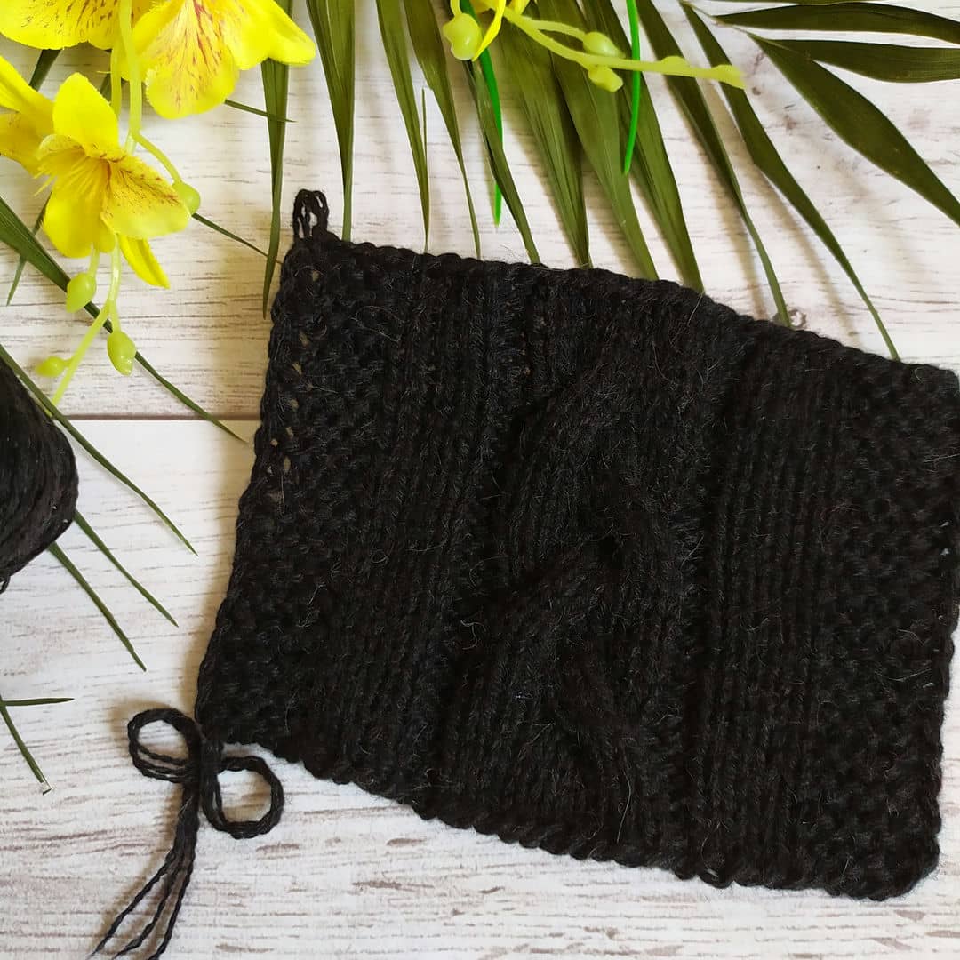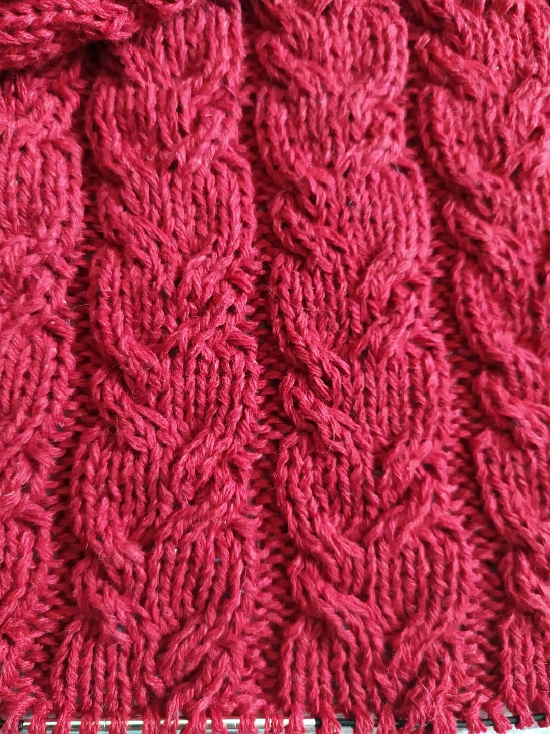 Образец лицевая гладь и коса (спицы №3,5), плотность 1см=2,25 петли, 1 см = 3 ряда.