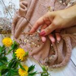 В работе дуэт из двух разных видов пряжи: – замечательная полушерсть, артикул Dulcos2, 650м/100г.⠀ – шикарные королевские пайетки на хлопковой основе, 320м/100г.