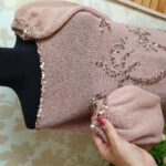 По краю пройм набираем петли и вяжем рукава – фонарики. Перед манжетом количество петель убавляем вдвое.