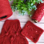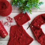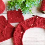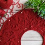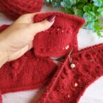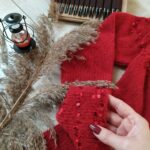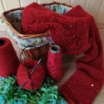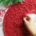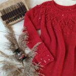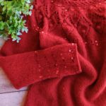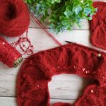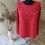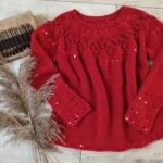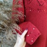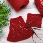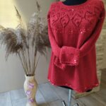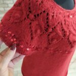Далее одна нить OPULENT и одна нить королевские пайетки, вяжем четыре ряда лицевыми петлями (4-7 ряды). Затем по схеме вяжем ажурный узор (смотрите в галерее ниже).