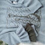 Размер 48-50. Длина джемпера 64 см. Спицы №3,5. Общий расход пряжи 460 г: – голубая – 400 г, – графит – 60 г.