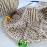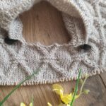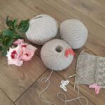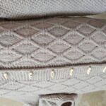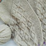 Для нового проекта приобрела пряжу Farina бежевого цвета (состав: меринос, альпака, хлопок), 260м/100г. Отлично подойдёт для ажуров, рельефных узоров, аранов. Образцы вязала спицами №4.