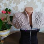 Далее убавляю количество петель в двое, закончила рукав небольшим манжетом из платочной вязки. По вашему желанию, в этом изделии могут быть прямые рукава с манжетом, или прямые широкие рукава или  рукава – фонарик.