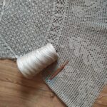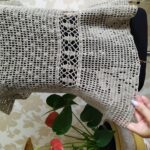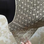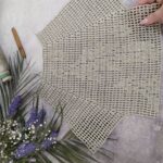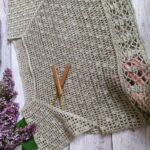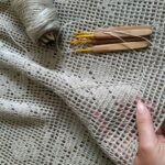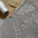 После мережки, в первом ряду филейной сетки, выполняю равномерные прибавленния. Затем повторяю их в 7-м и 14-м рядах.