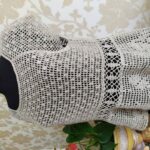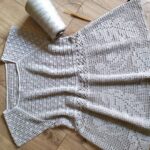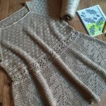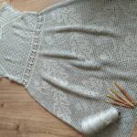 Вяжу я платье сверху вниз единым полотном. Начинаю вязать кокетку филейной сеткой, далее росток, затем подрезы и перехожу на круговое вязание основной части. На талии выполняю мережку.