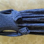 От пройм по краю полотна (из кромочных петель) набираю по 76 петель для каждого рукава. Вяжу полотно лицевой гладью, выполняю равномерные убавления. До манжета убавила по 16 петль. Осталось по 60 петель.