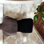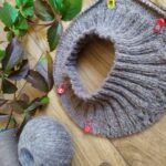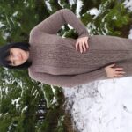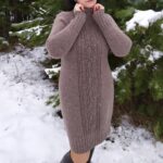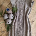 Платье вяжется единым полотном сверху вниз. Связала образец, провела ВТО, выяснилось, что пряжа в полотне дает большую усадку, это нужно учитывать в расчетах петель.