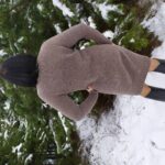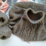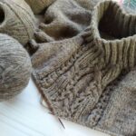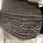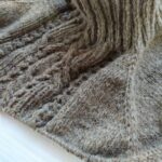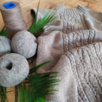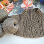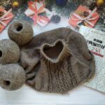 Расход пряжи 570 г: – 440 г пряжа “Borotalco”, (750м/100г, цвет “миндаль”, в две нити); – 130 г меринос, (1500м/100г, одна нить).