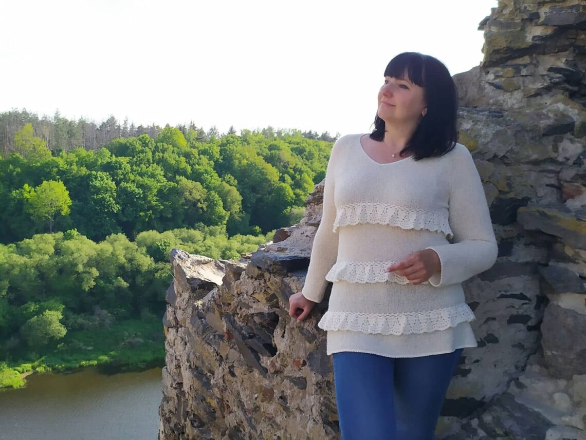 Соединяем детали иглой трикотажным швом. По основному полотну выполняю крючком воланы (схема ниже в галерее).