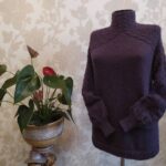 Свитер вяжу единым полотном сверху вниз, начинаю с высокого воротника.