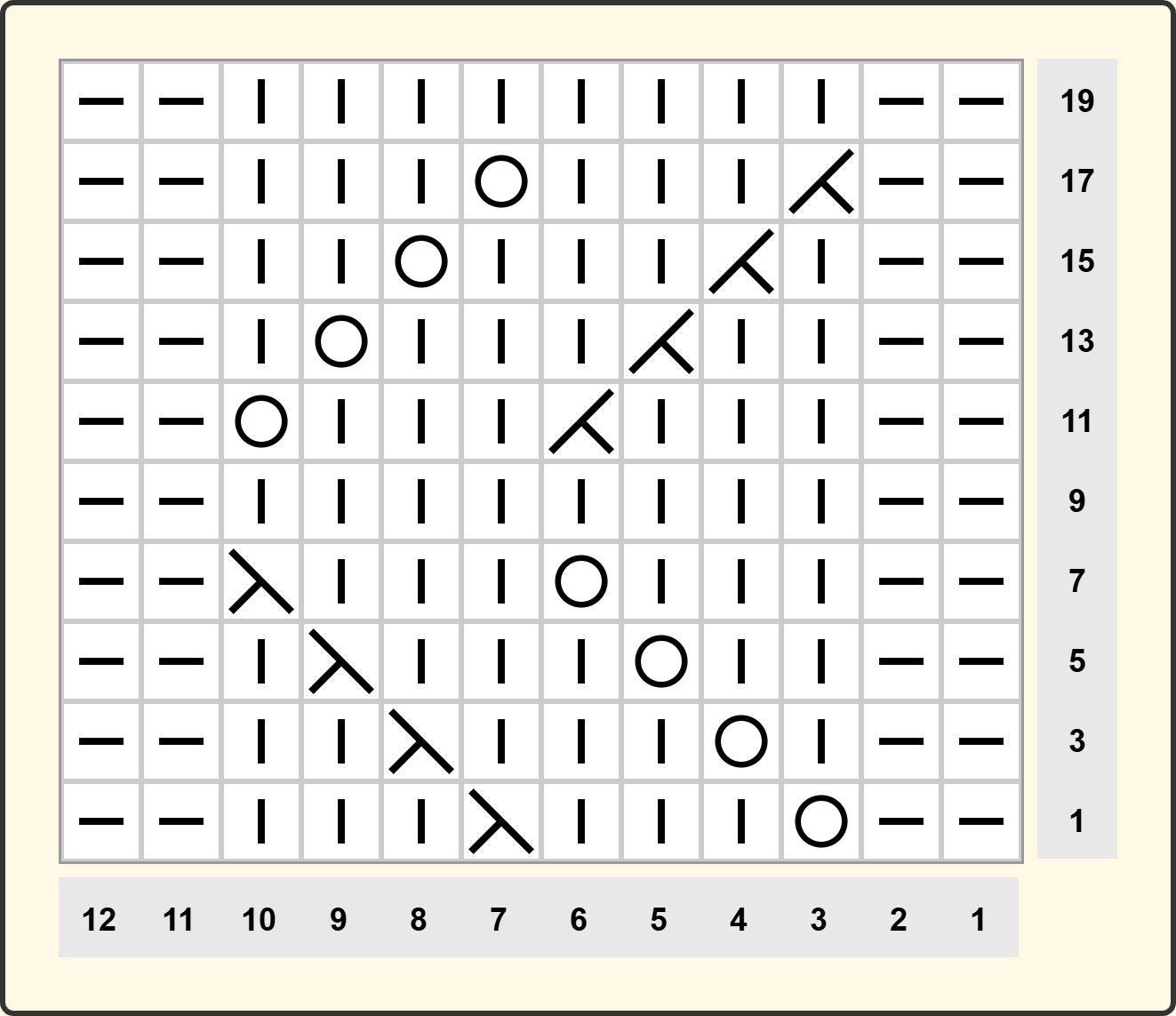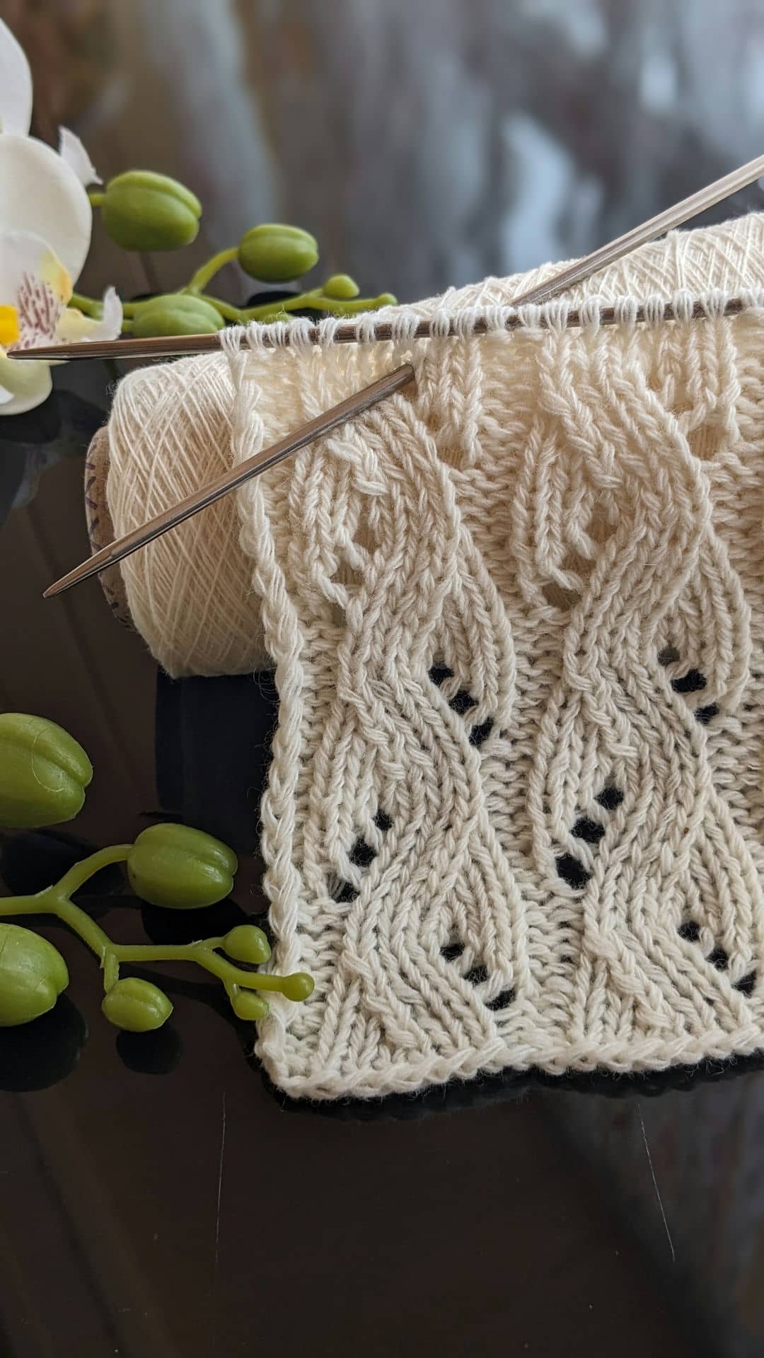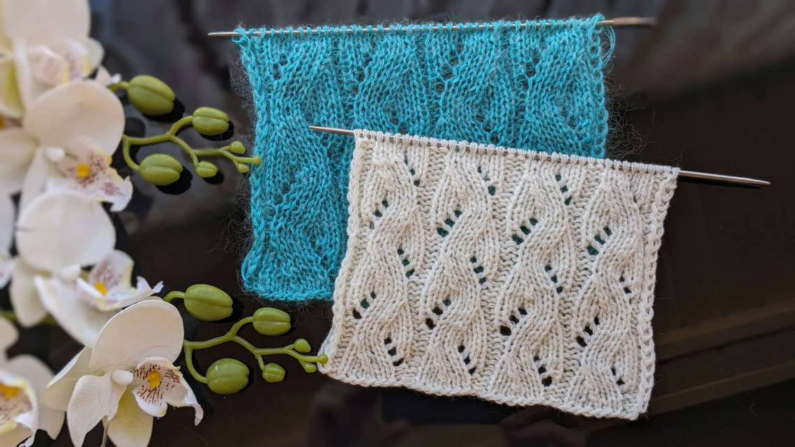Візерунок буде гарно виглядає як у монотонному виконанні, так і в поєднанні з іншими ажурними або лицьовими ділянками полотна. Завдяки чіткому вертикальному ритму він візуально витягує силует і додає виробу легкості.