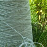 Для цієї роботи я обрала бобінний італійський мікс: буретний шовк з бавовною (50/50), 750м/100г. В’яжу ниточкою в два складення. Для легкого мерехтіння додала ще одну нитку тонкого люрексу (2800м/100м). Спиці №3,5.
