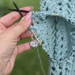 Наступний 13-й ряд в’яжемо усі петлі лицьовими, ділимо їх на окремі частини і відмічаємо маркерами:
