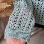 Далі по краю ростка і підрізу набираю ще по 26 петель для кожного рукава. На спицях: 55 + 26 = 81 петля. Це повних 9 рапортів візерунку. В’яжемо рукава по колу до необхідної довжини. По нижній рукава виконуємо 12 рядів резинкою 1х1, далі 2 рядка подвійною резинкою. Закриваємо петлі голкою.
