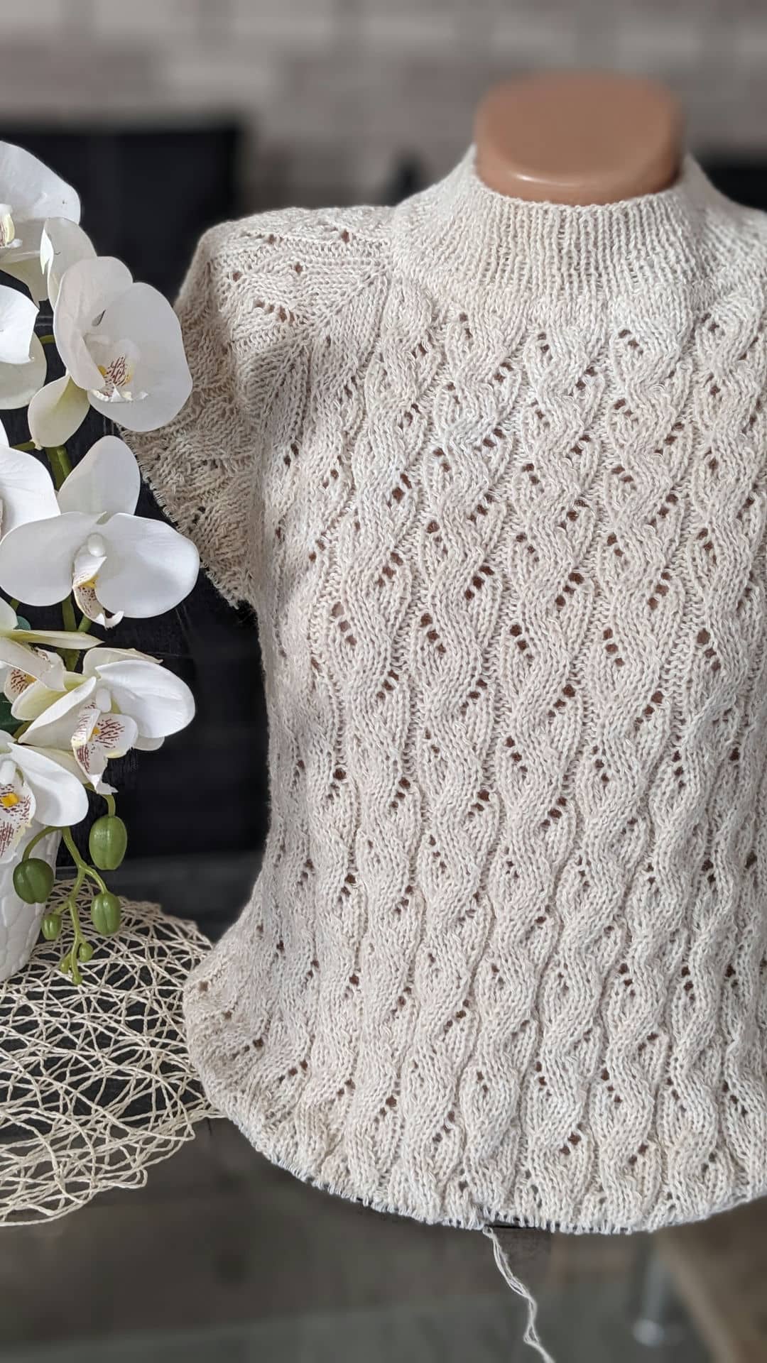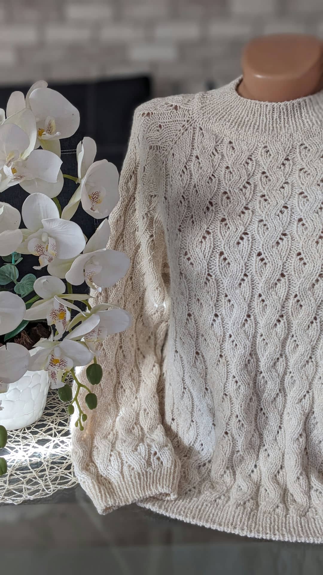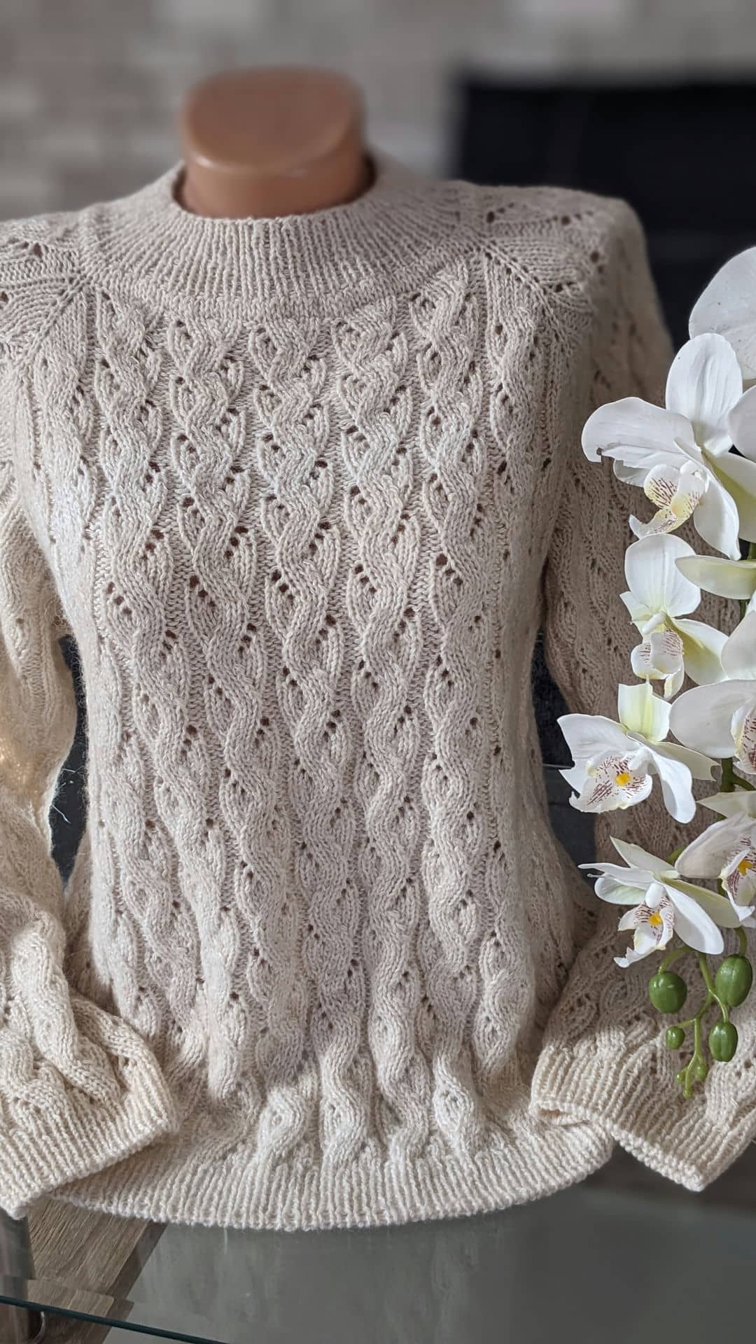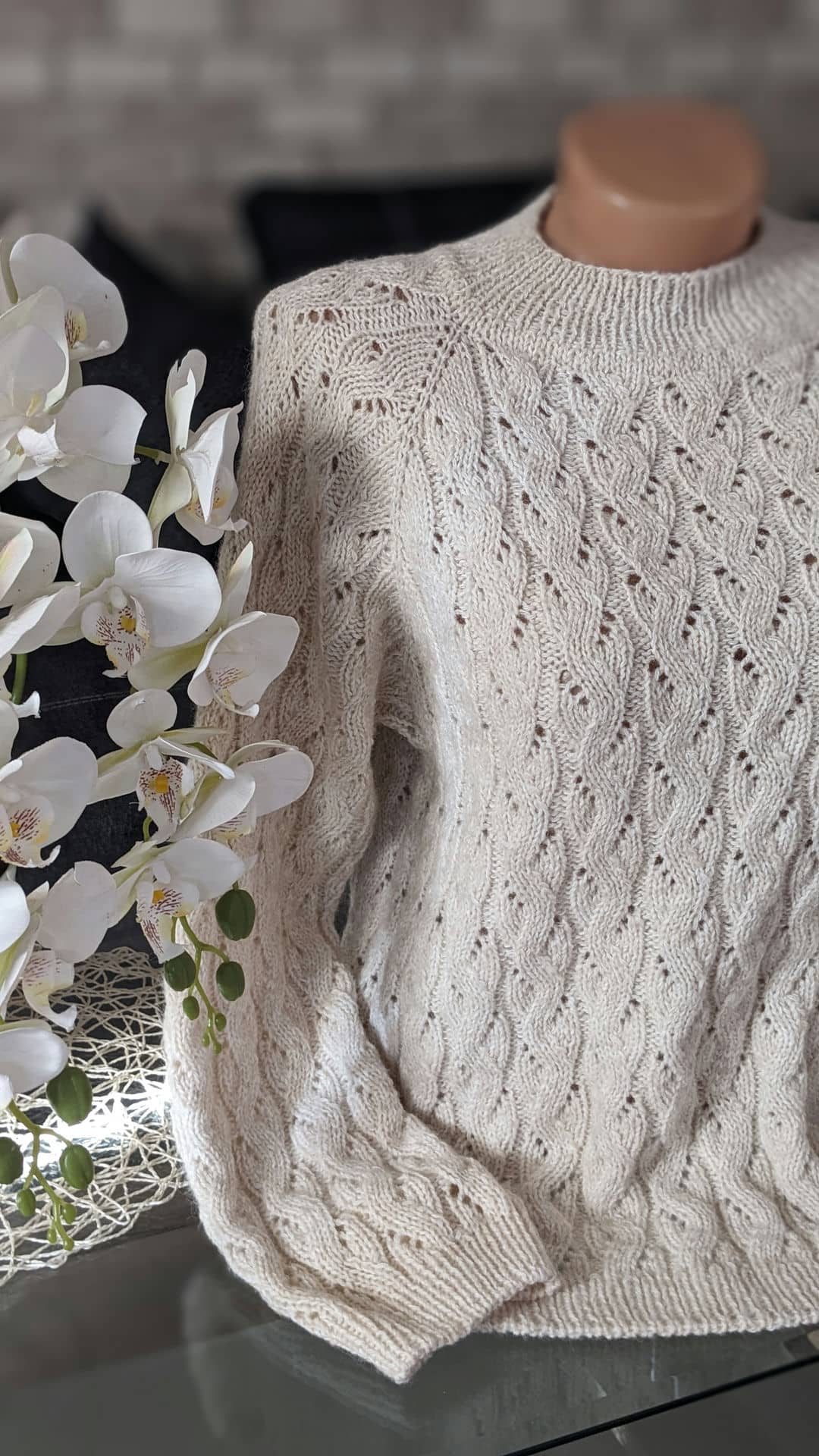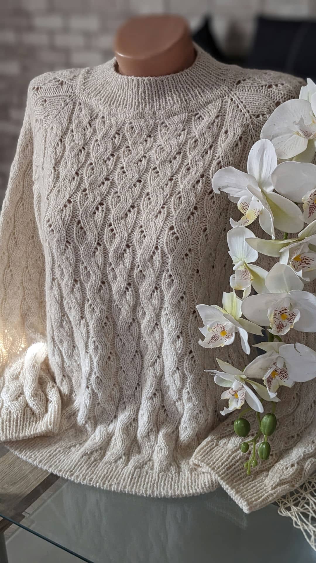 Я розпочала роботу над ажурним джемпером “Шепіт”, який ідеально впишеться у весняний гардероб. Це саме та модель, яку хочеться одягнути у перші сонячні дні — легка, повітряна, делікатна, але водночас достатньо тепла для мінливої погоди.