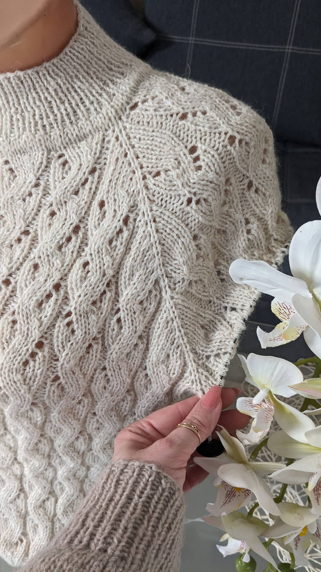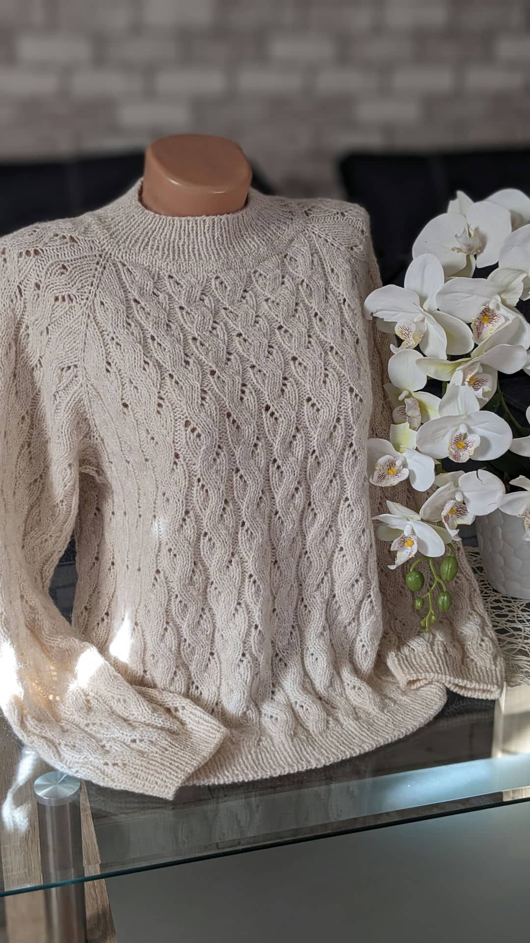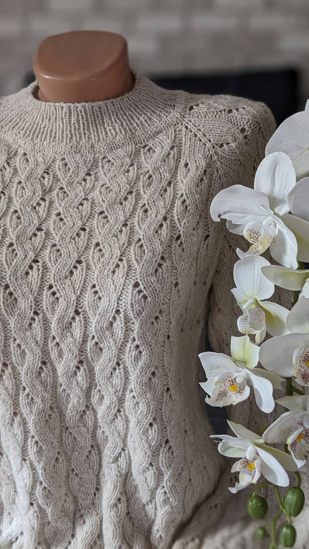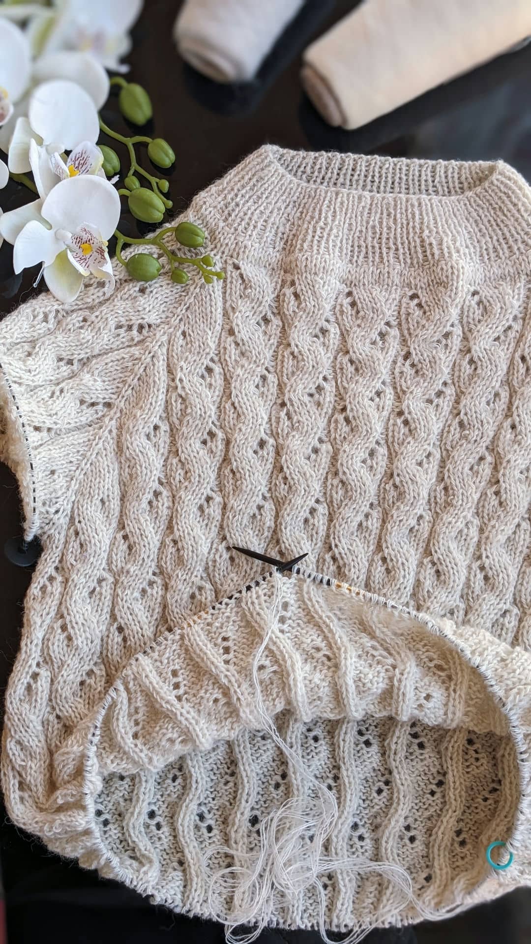 Я розпочала роботу над ажурним джемпером “Шепіт”, який ідеально впишеться у весняний гардероб. Це саме та модель, яку хочеться одягнути у перші сонячні дні — легка, повітряна, делікатна, але водночас достатньо тепла для мінливої погоди.