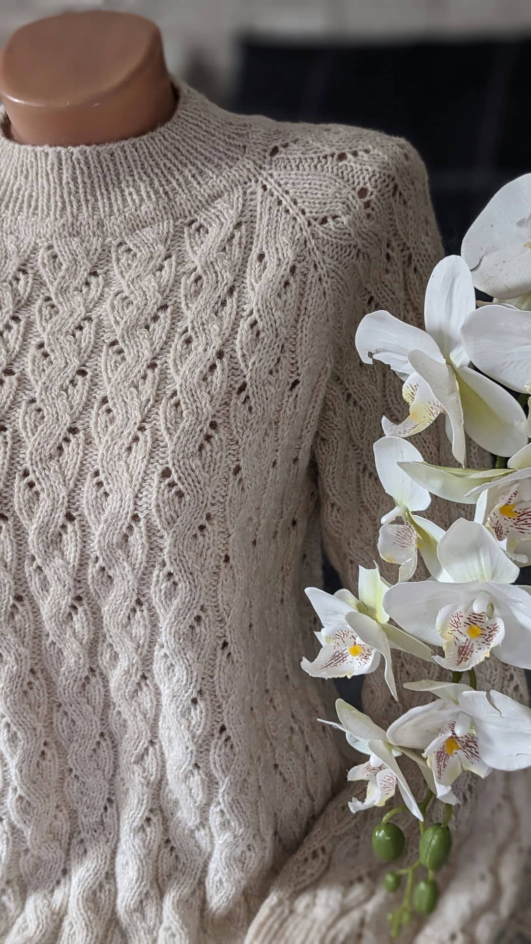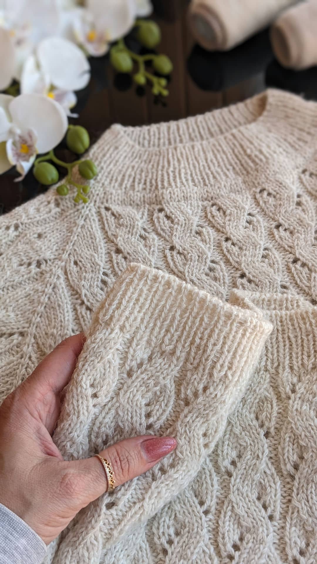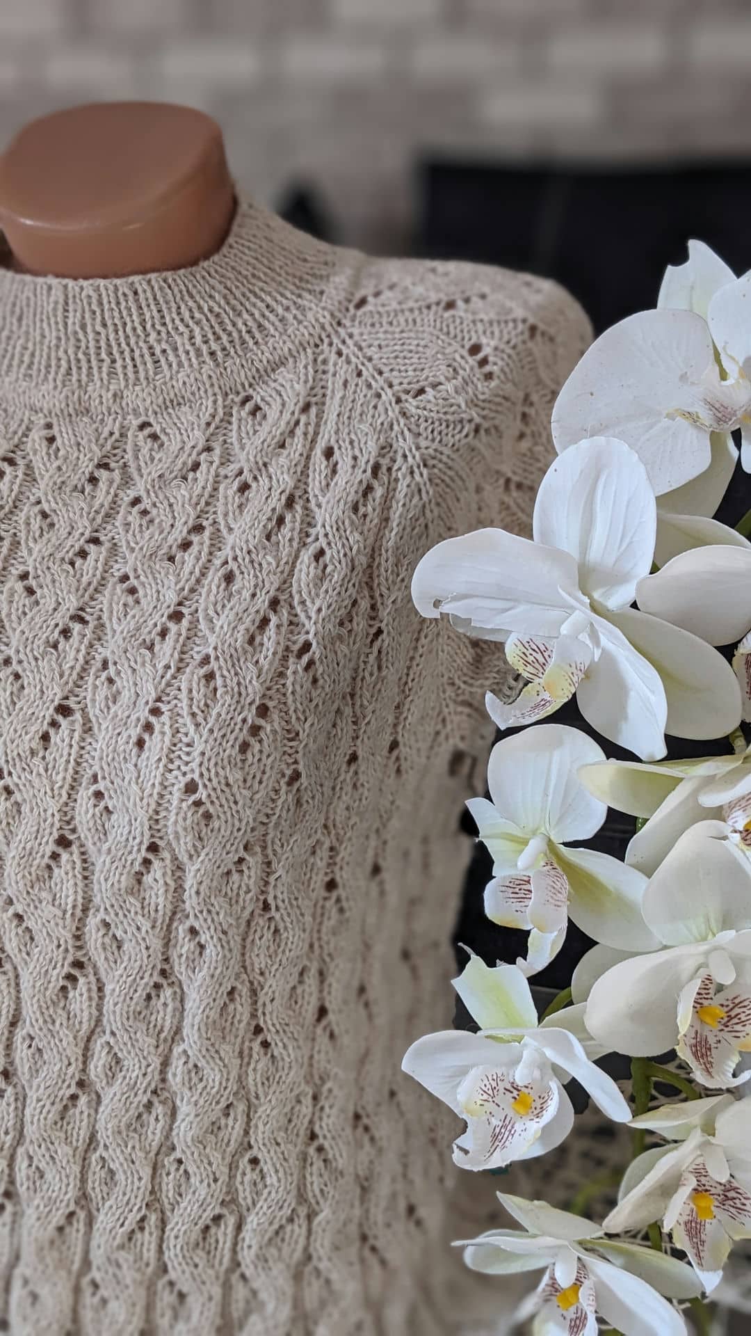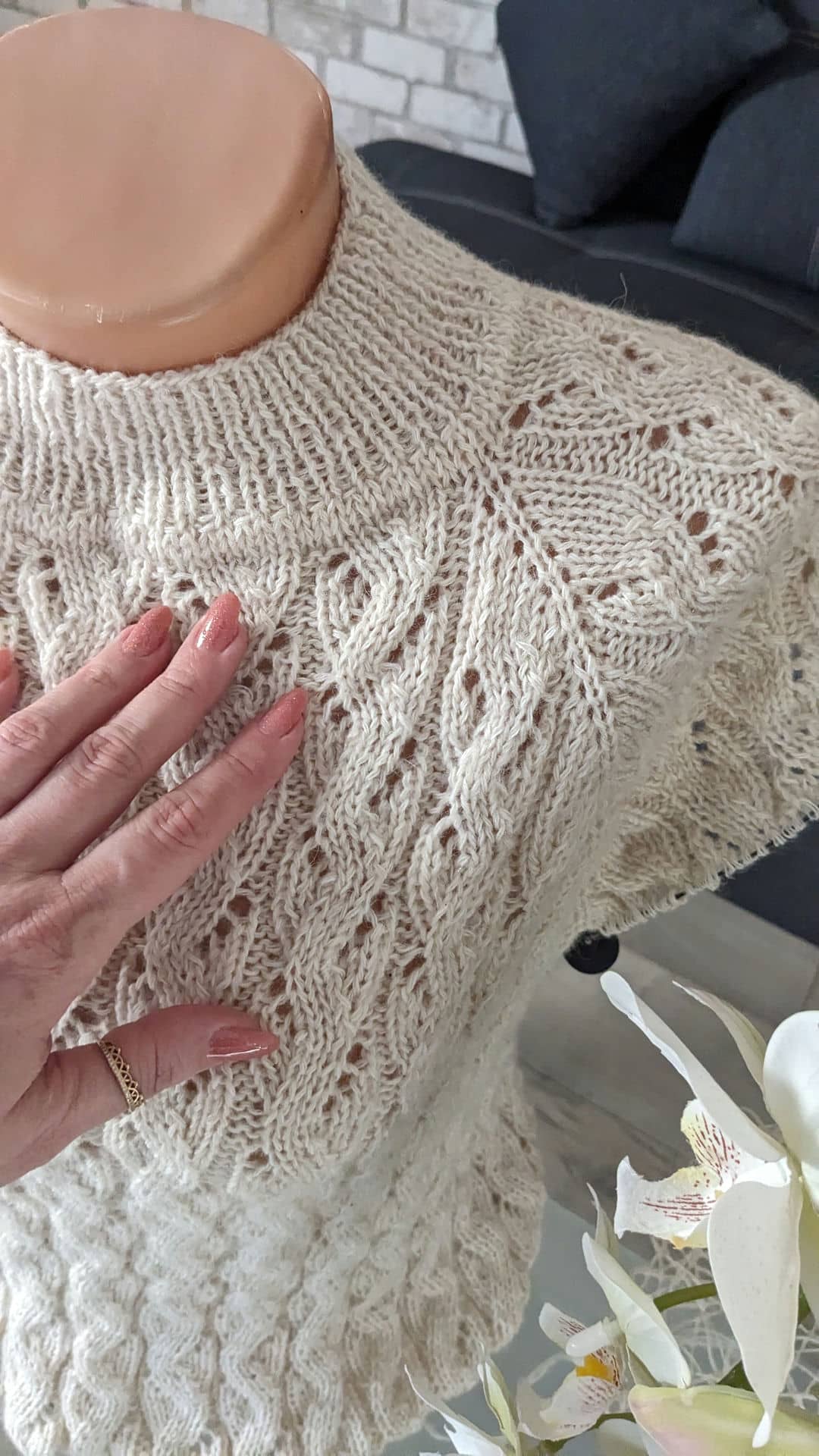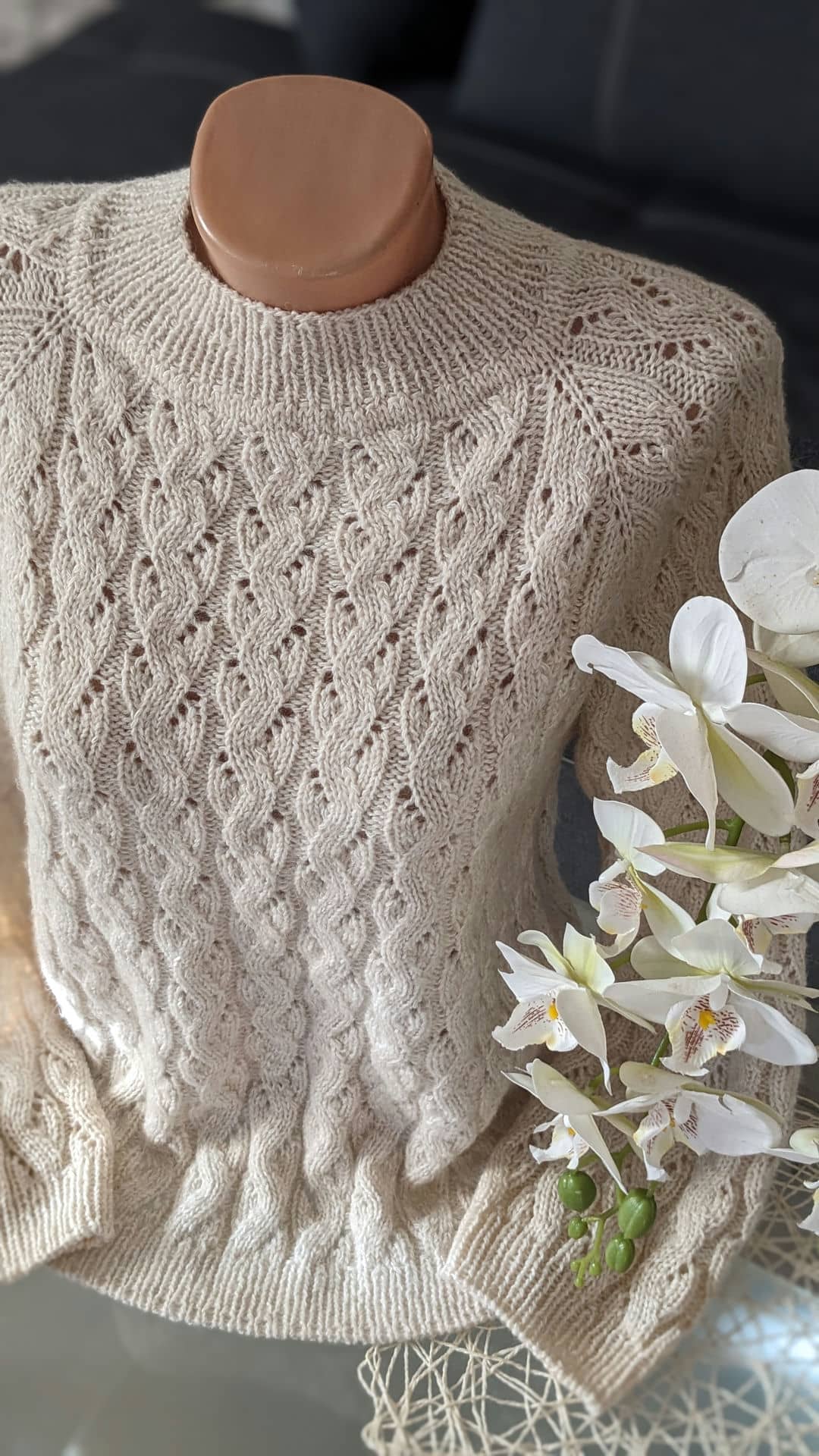 Я розпочала роботу над ажурним джемпером “Шепіт”, який ідеально впишеться у весняний гардероб. Це саме та модель, яку хочеться одягнути у перші сонячні дні — легка, повітряна, делікатна, але водночас достатньо тепла для мінливої погоди.