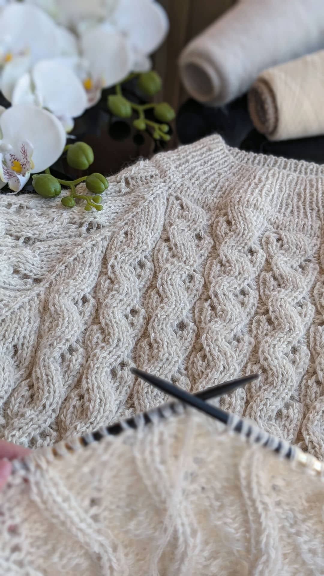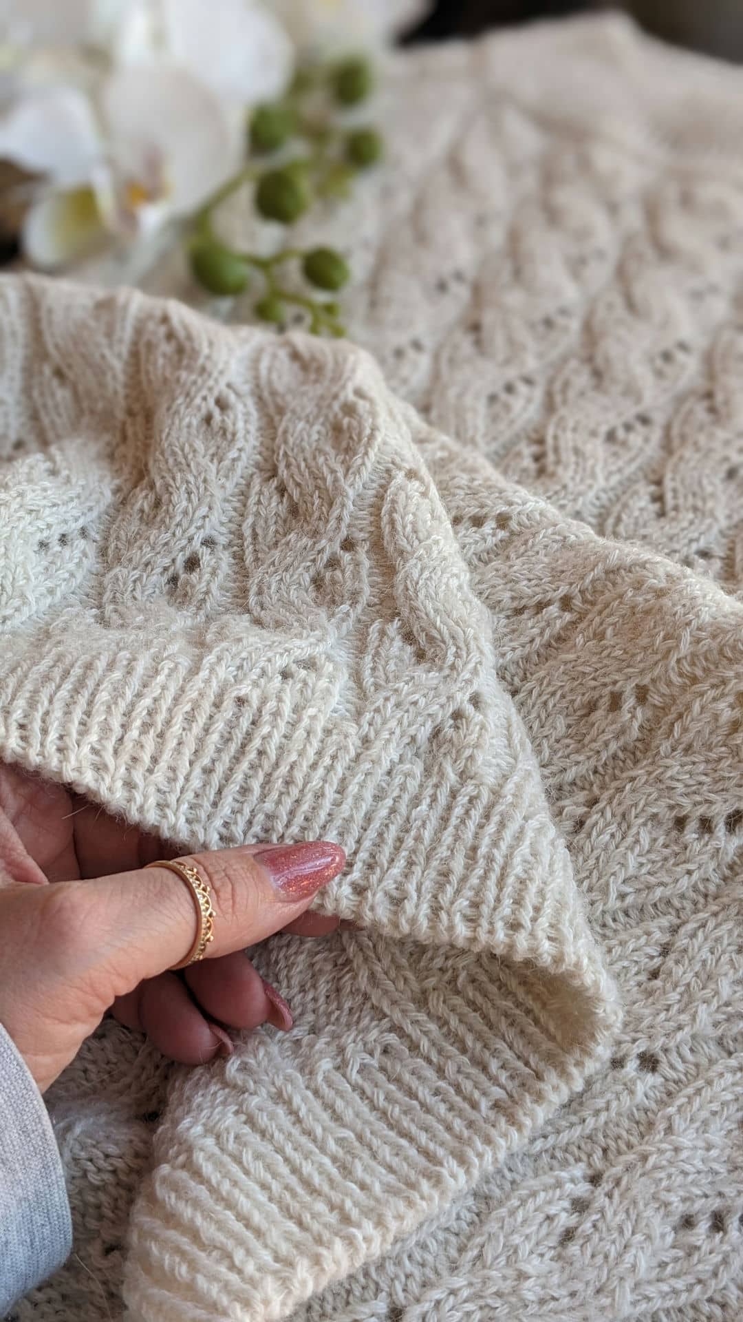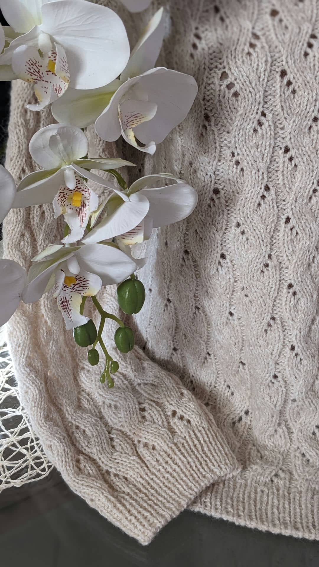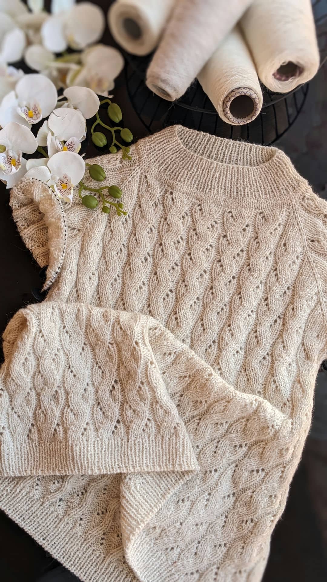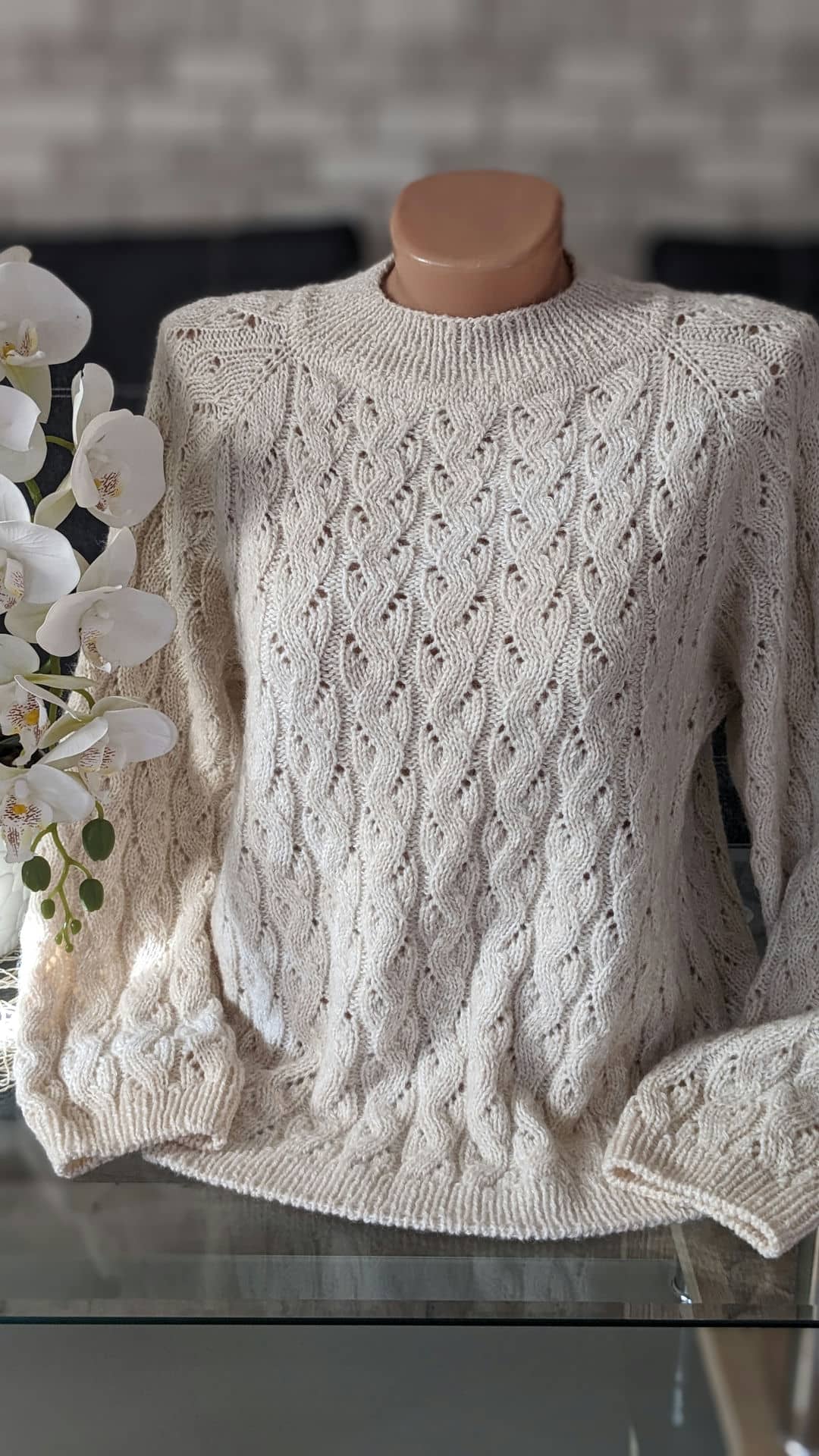 Я розпочала роботу над ажурним джемпером “Шепіт”, який ідеально впишеться у весняний гардероб. Це саме та модель, яку хочеться одягнути у перші сонячні дні — легка, повітряна, делікатна, але водночас достатньо тепла для мінливої погоди.