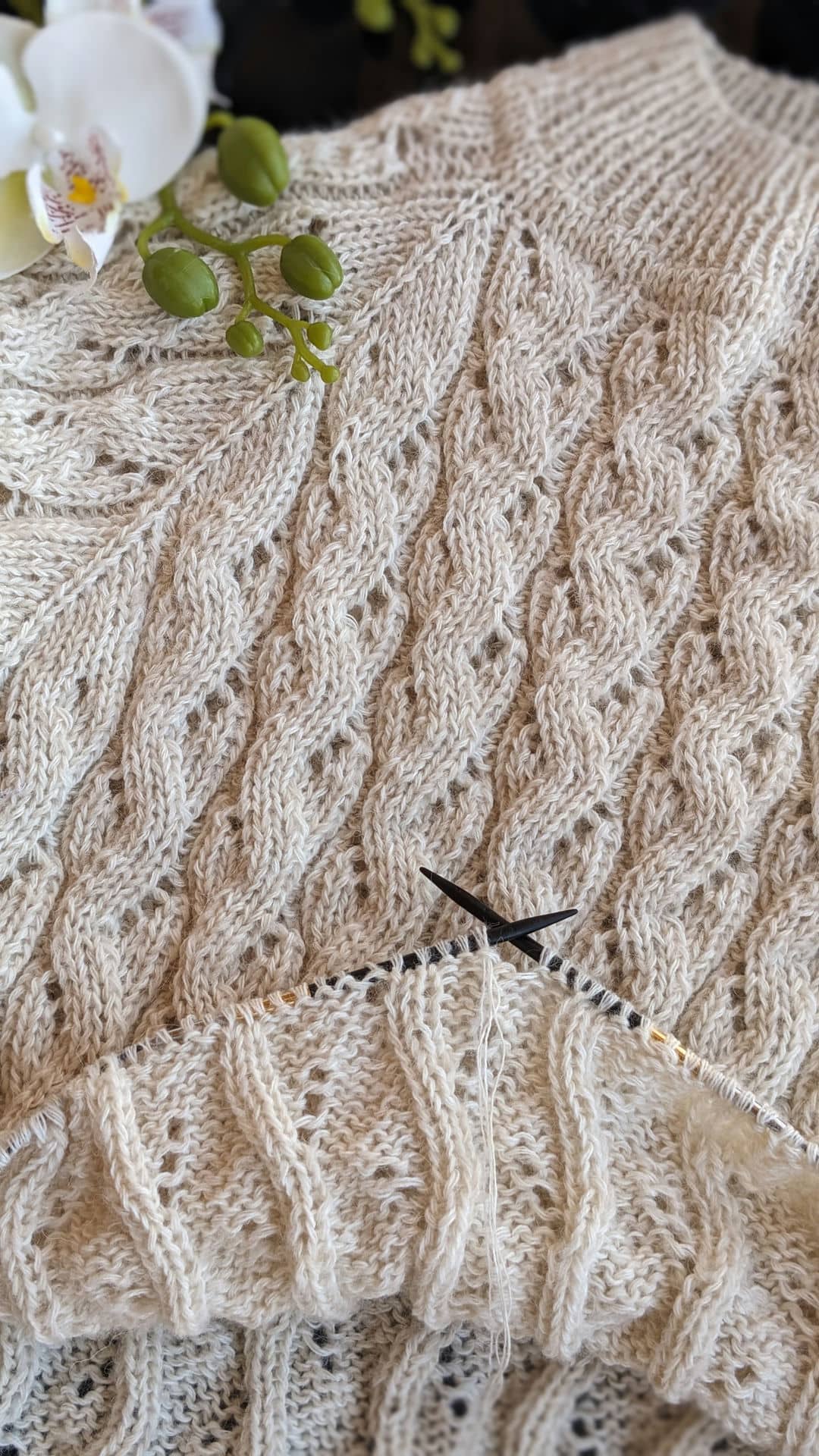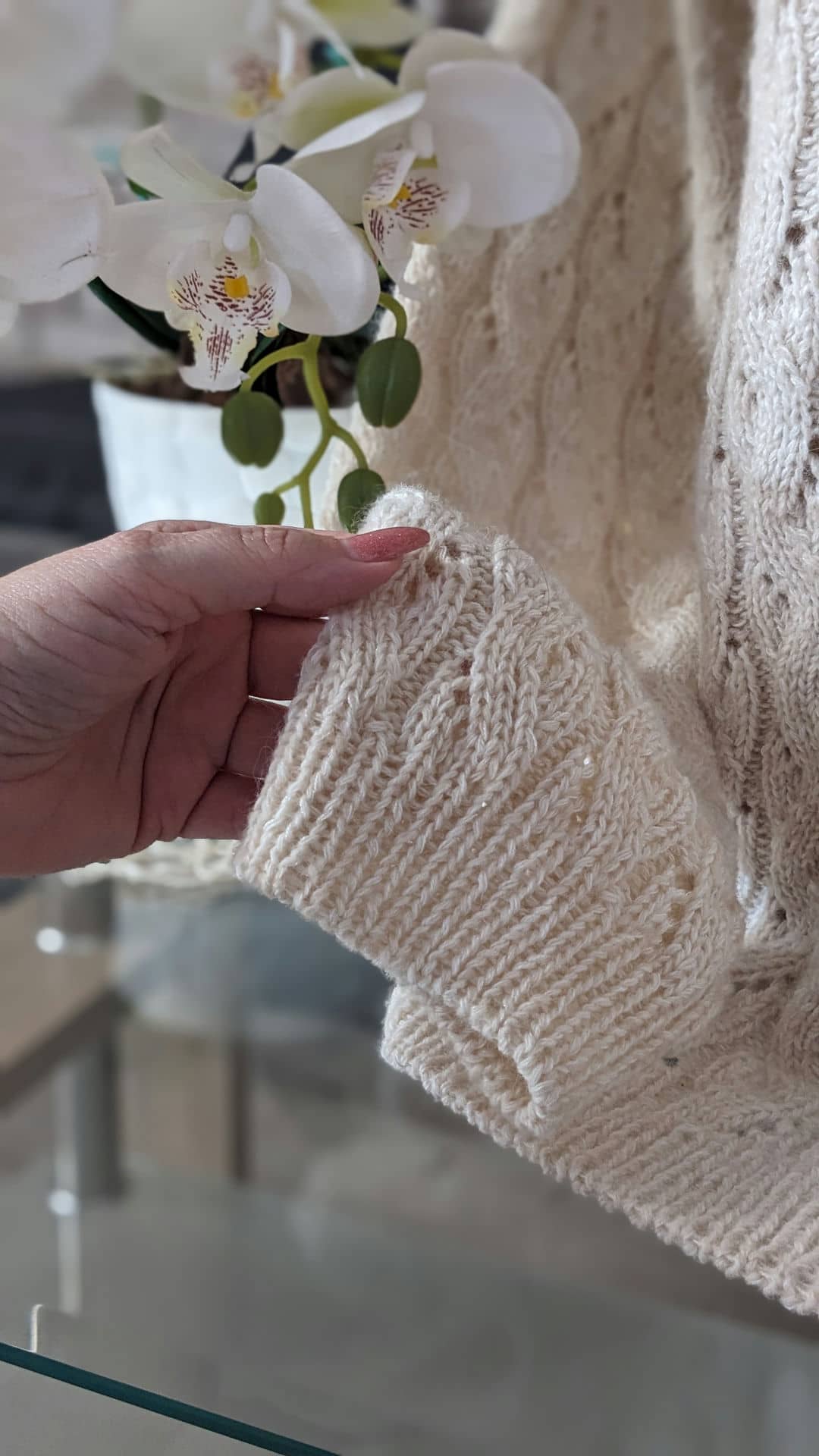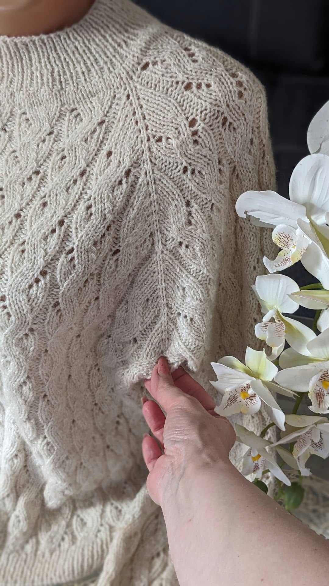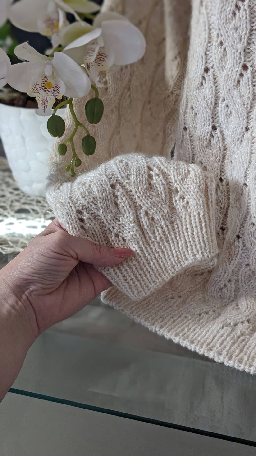 Я розпочала роботу над ажурним джемпером “Шепіт”, який ідеально впишеться у весняний гардероб. Це саме та модель, яку хочеться одягнути у перші сонячні дні — легка, повітряна, делікатна, але водночас достатньо тепла для мінливої погоди.