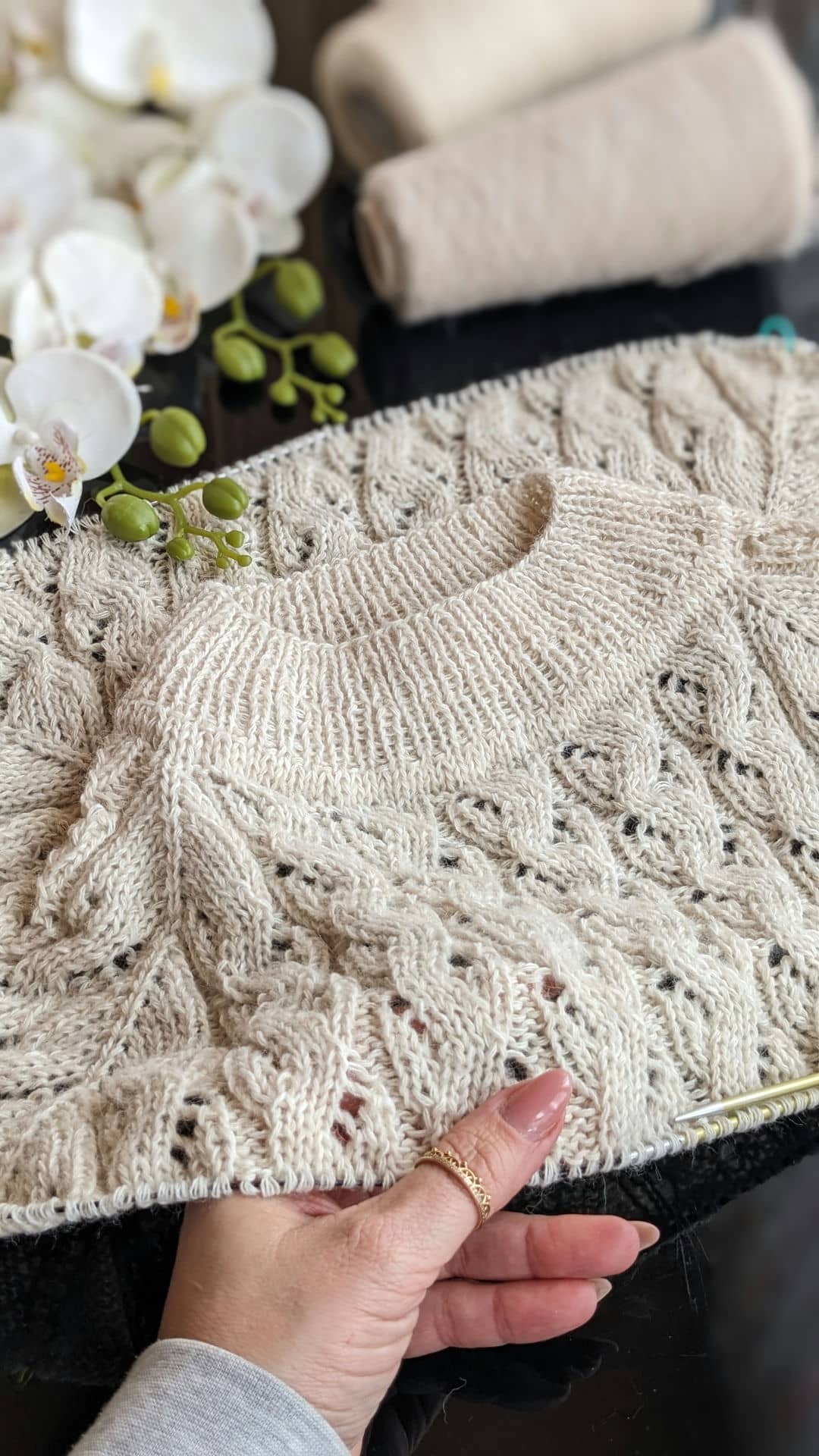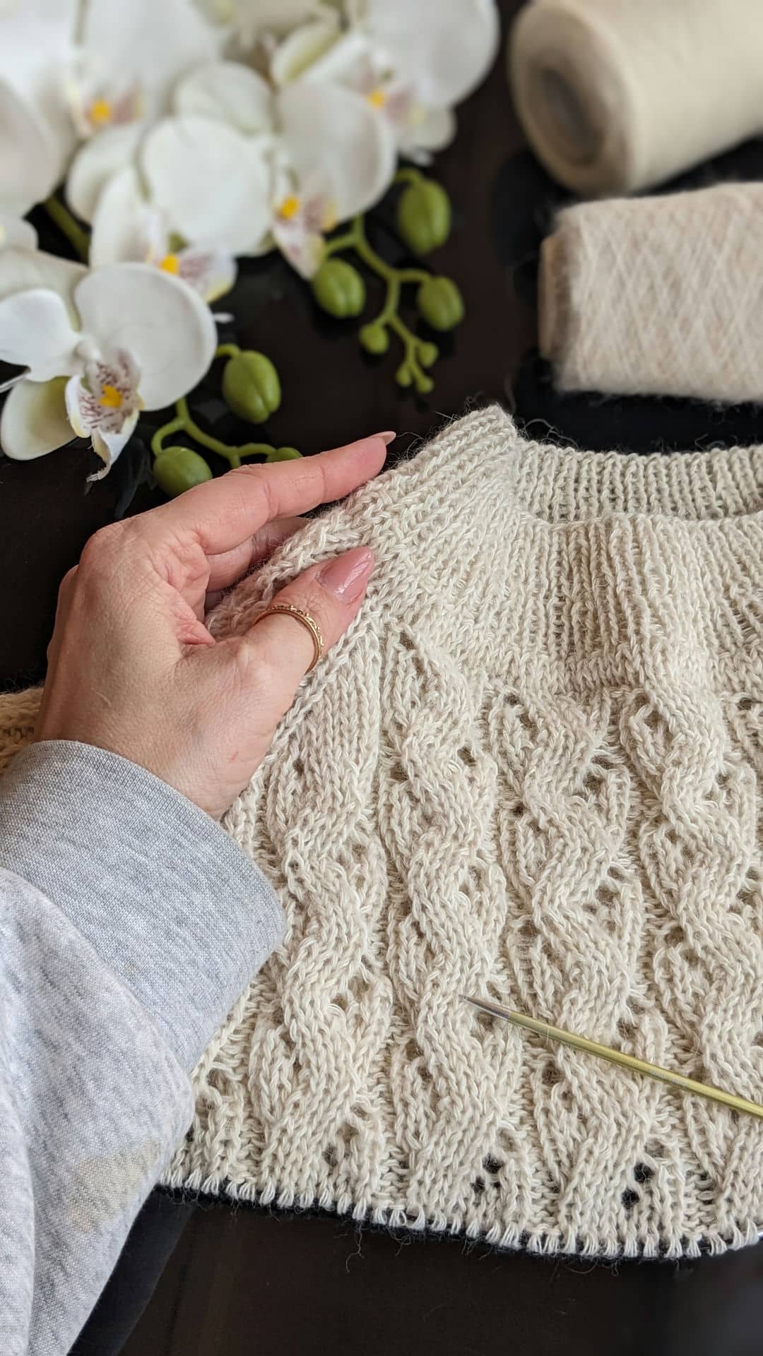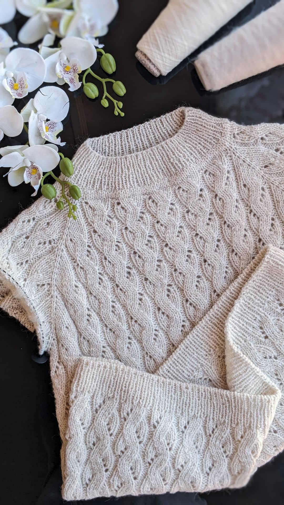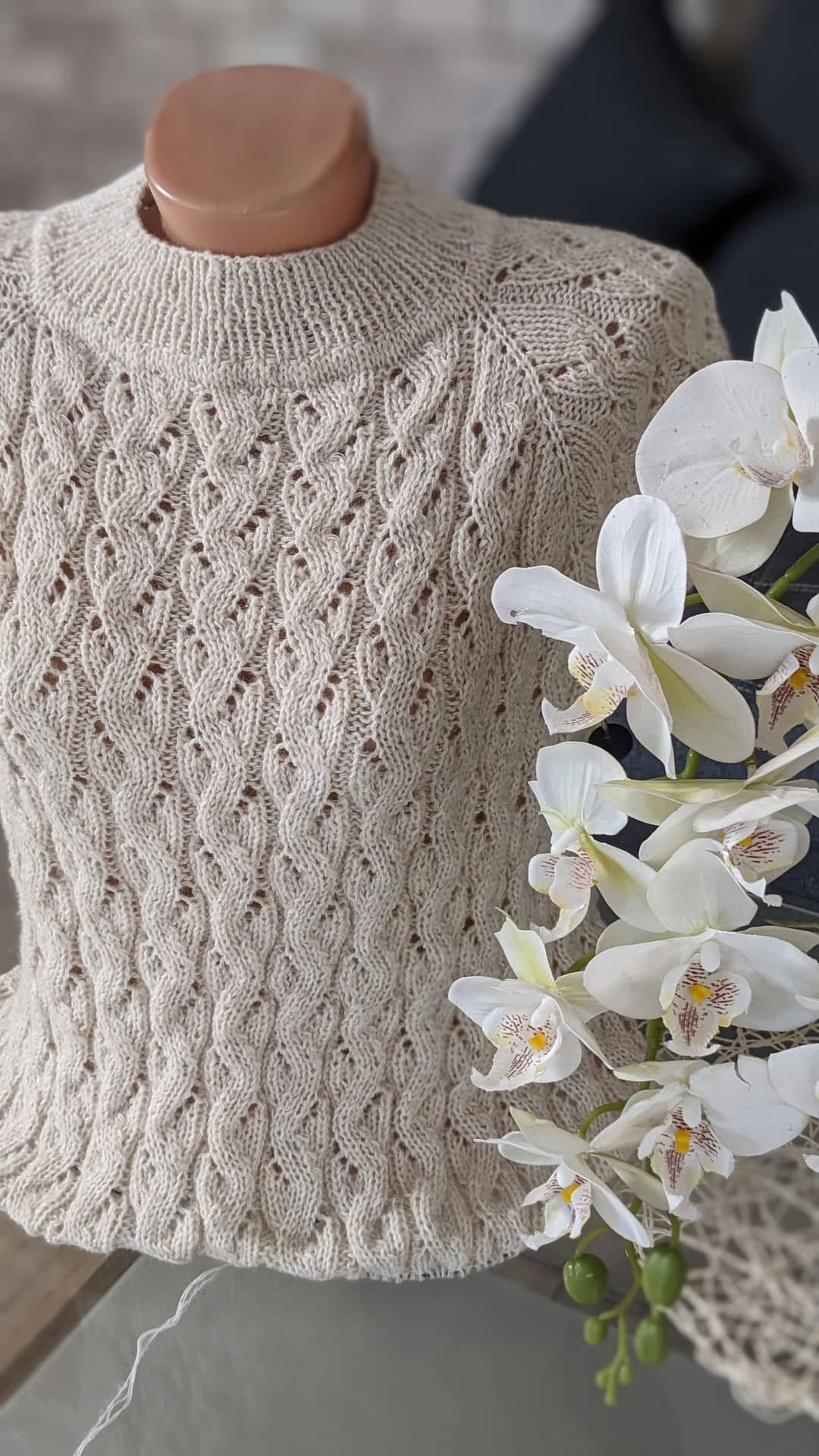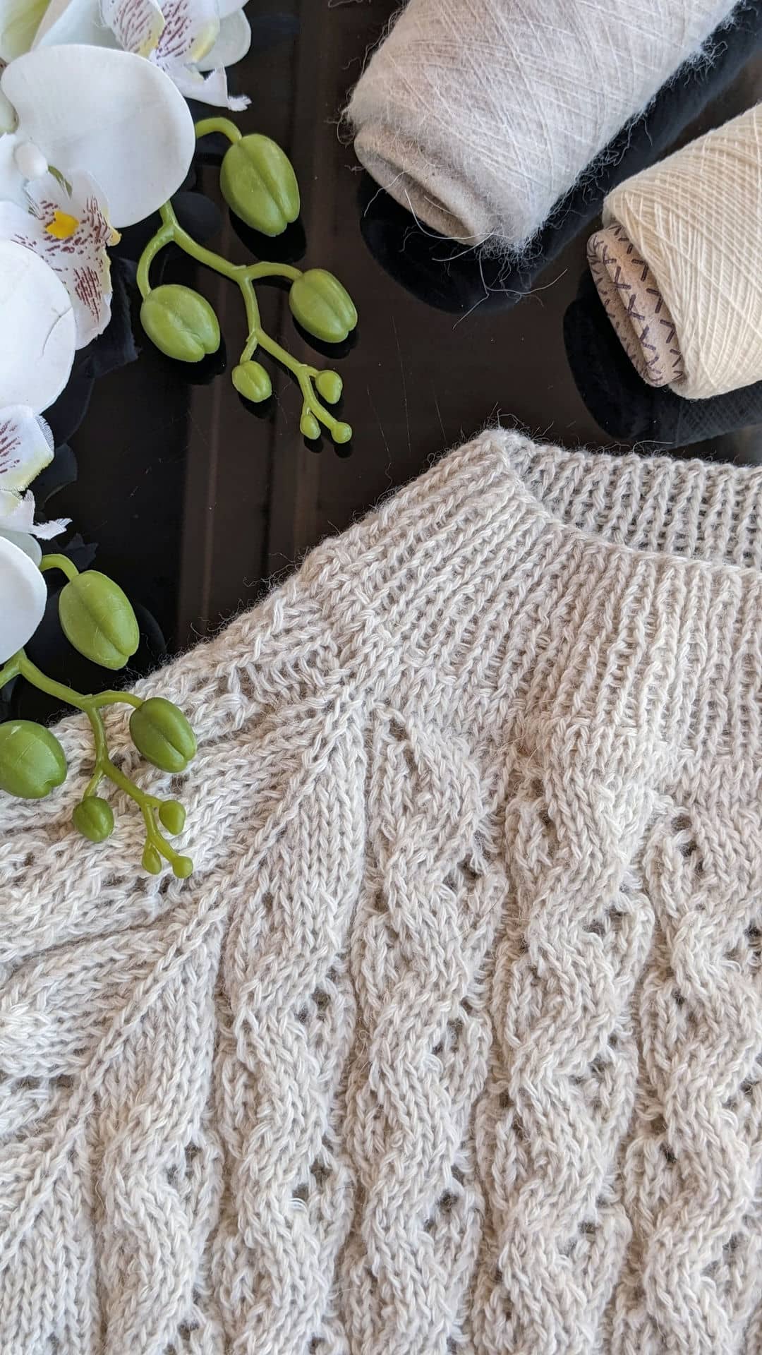 Я розпочала роботу над ажурним джемпером “Шепіт”, який ідеально впишеться у весняний гардероб. Це саме та модель, яку хочеться одягнути у перші сонячні дні — легка, повітряна, делікатна, але водночас достатньо тепла для мінливої погоди.