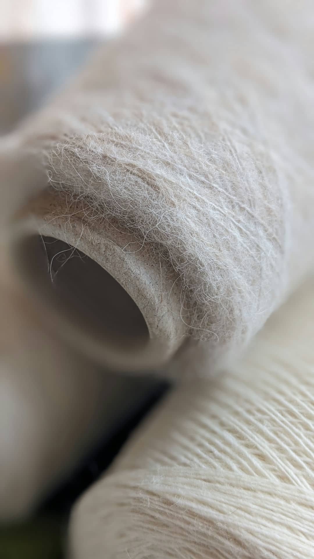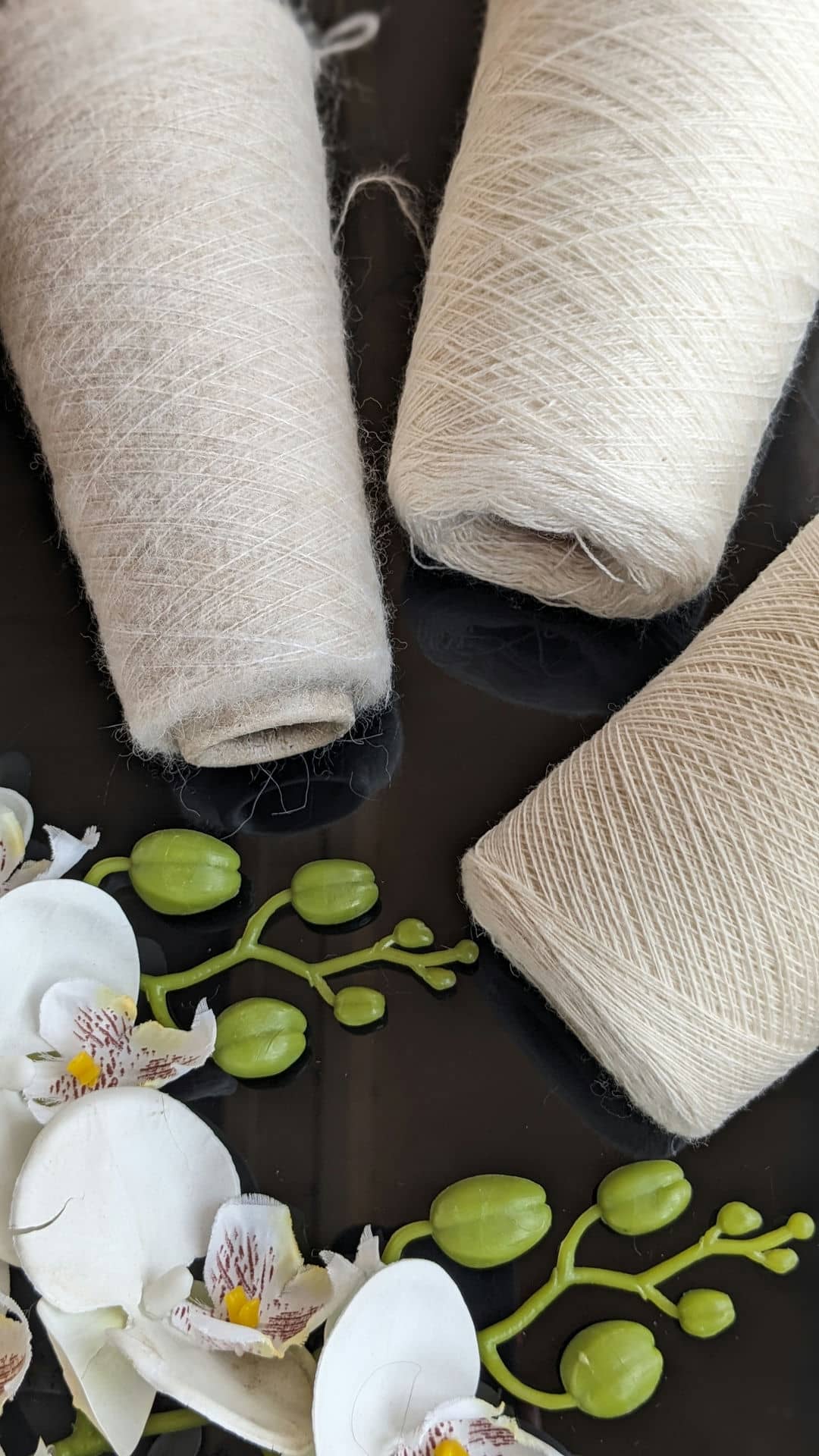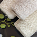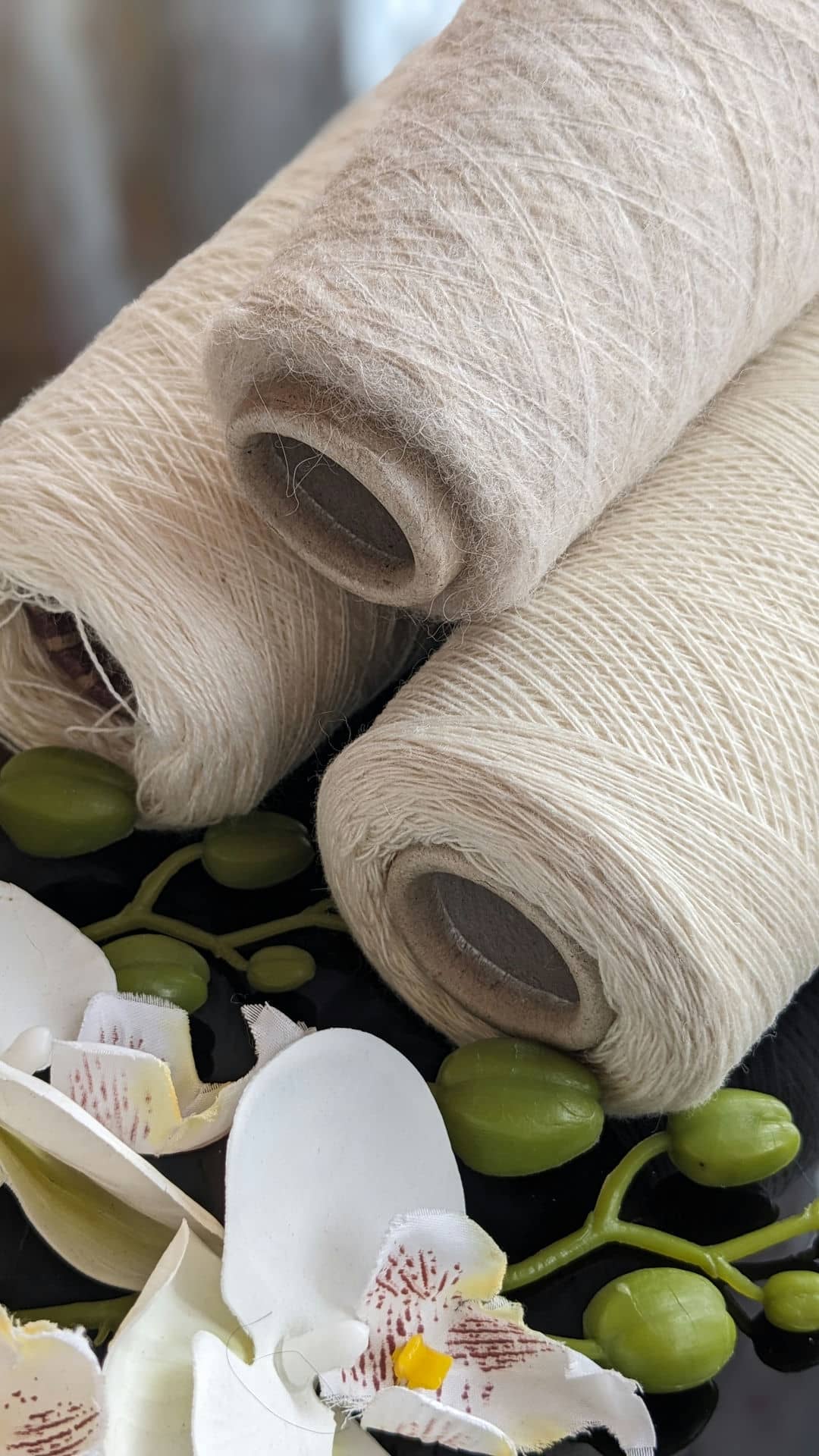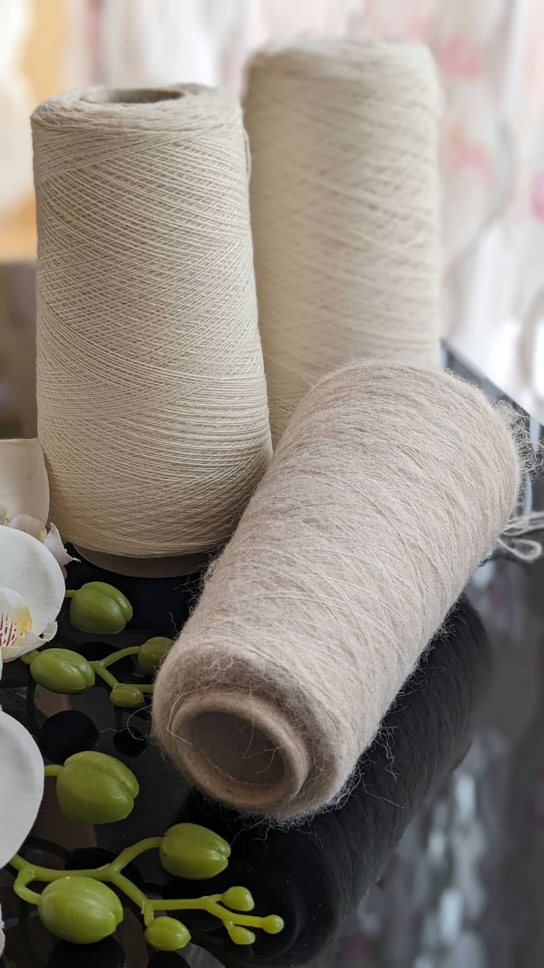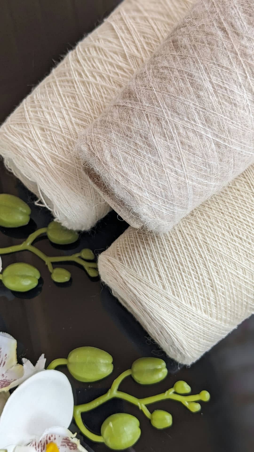 У роботі поєдную два види пряжі молочних відтінків: