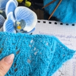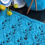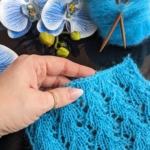 Лицьові (непарні) ряди виконуємо за схемою, виворітні (парні) ряди – виворітні петлі. Зразок в’язала спицями №3,5.