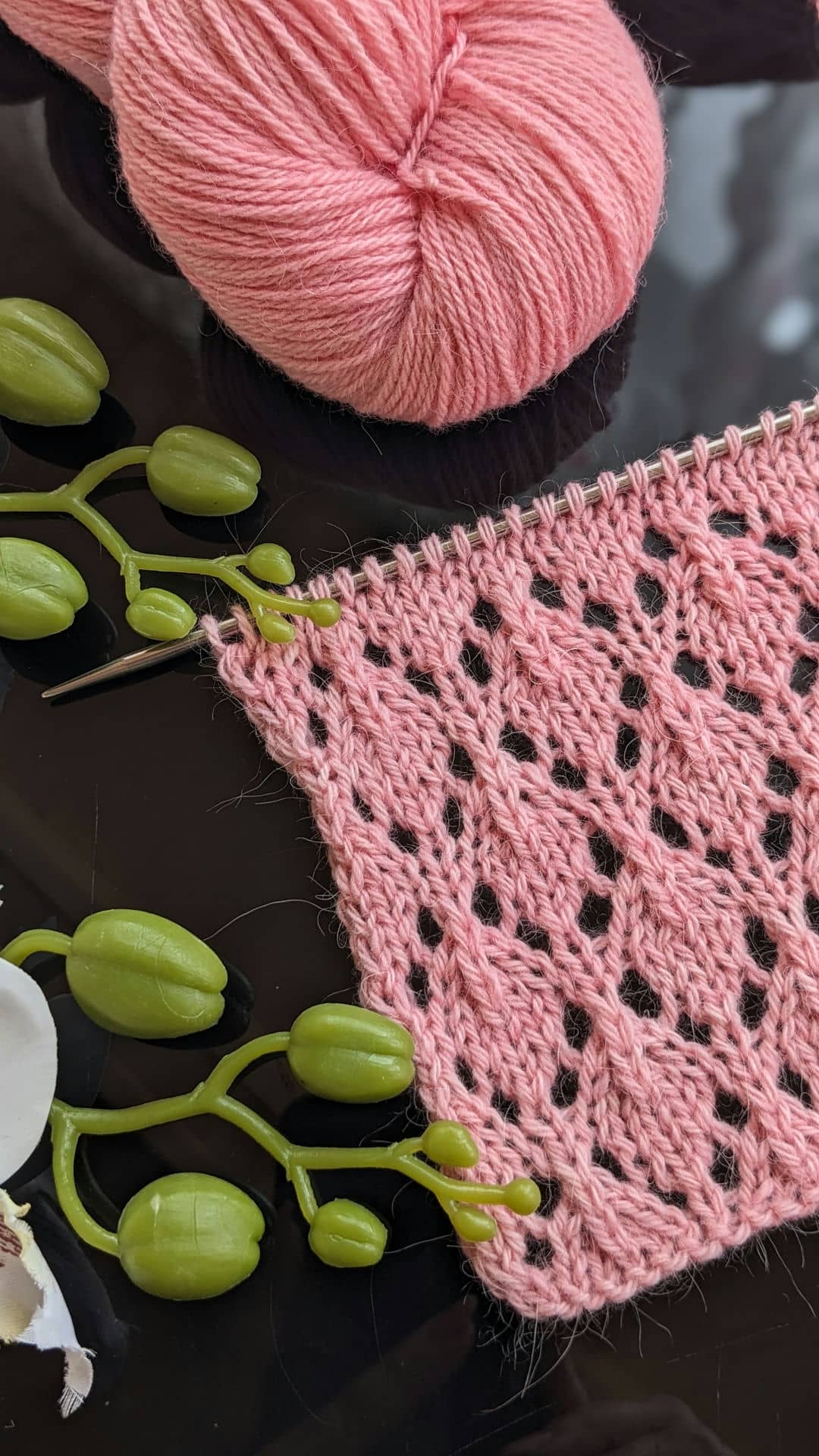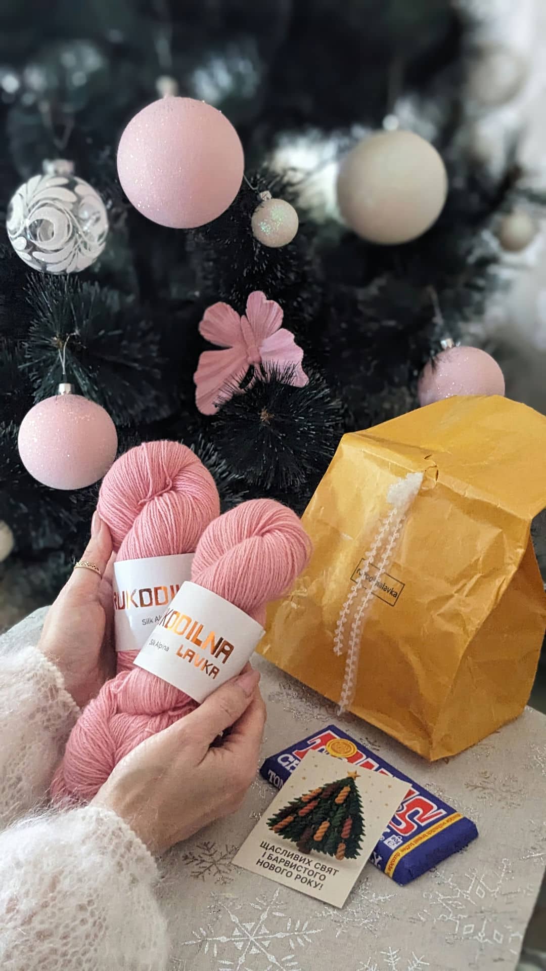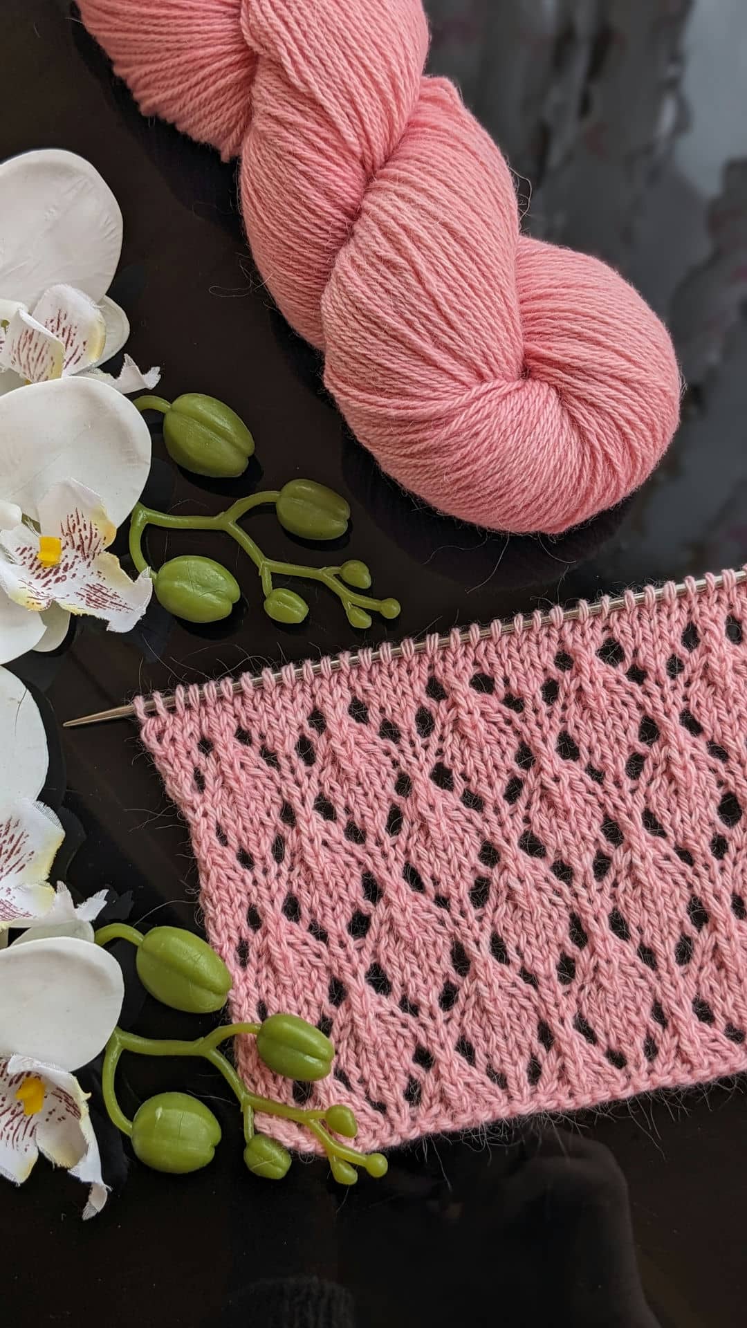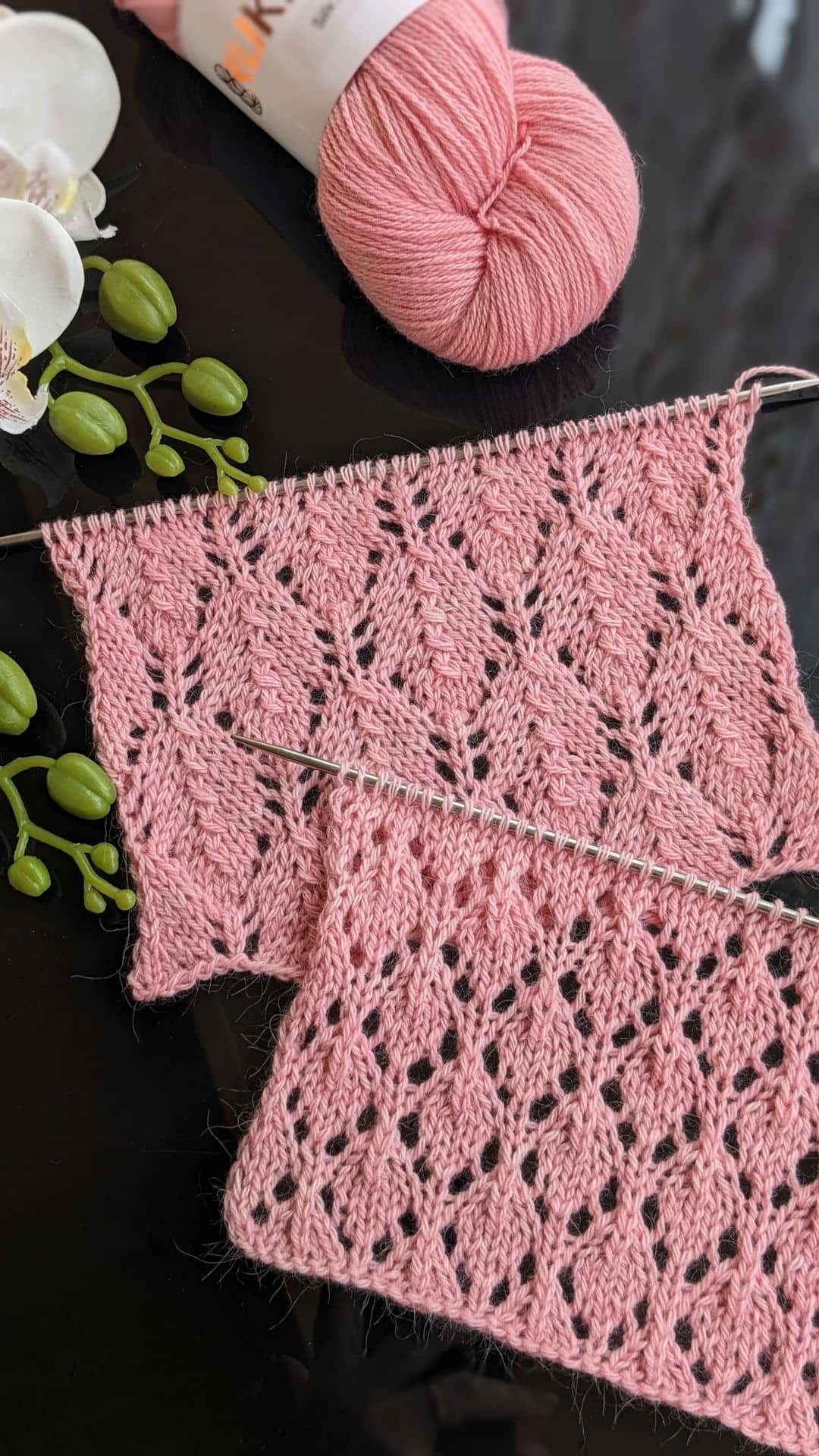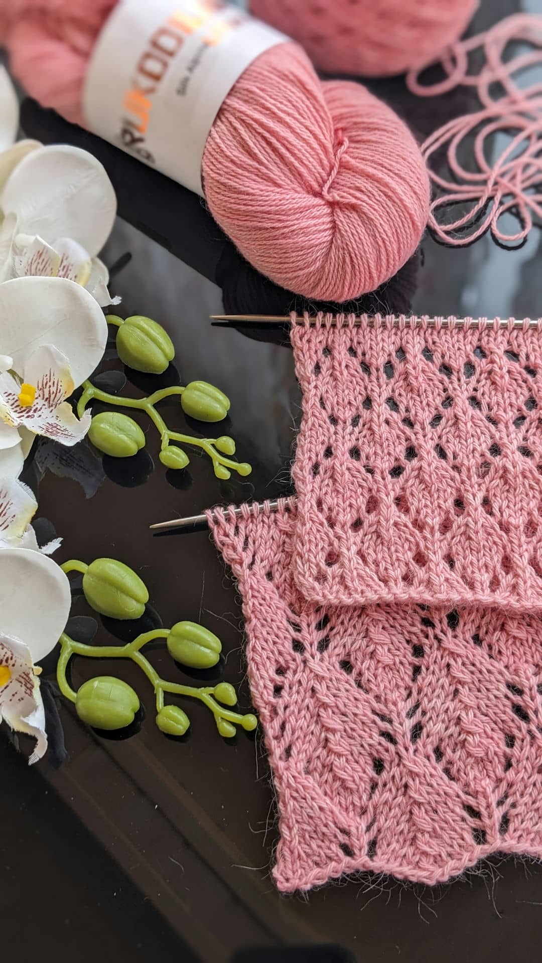 Для зразків була обрана пряжа зі складом: альпака, меринос і шовк — поєднання, яке ідеально підкреслює ажур. Метраж 400м/100г, спиці №3,5.