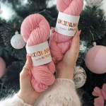 Альпака додає полотну м’якості, легкого тепла та благородної пухнастості. Меринос відповідає за еластичність, комфорт у носінні та чіткість візерунка. Шовк надає делікатного блиску, робить полотно живим і легким, з красивою грою світла.