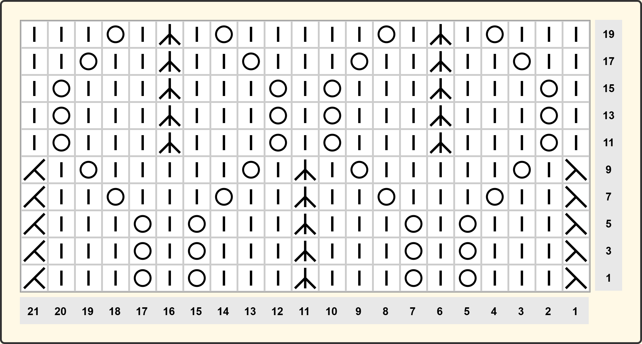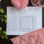 Рапорт 10 петель. При в’язанні зворотніми рядами додаємо 1 петлю для симетрії та 2 петлі крайові. Схему додала нижче в галерею.