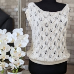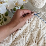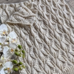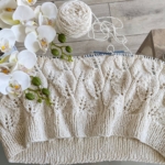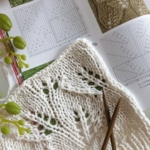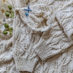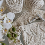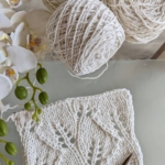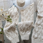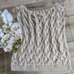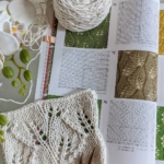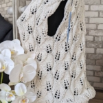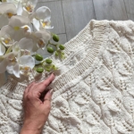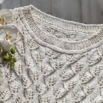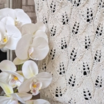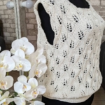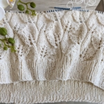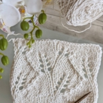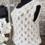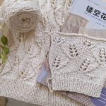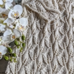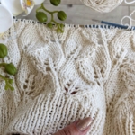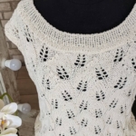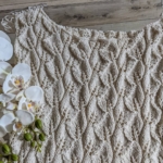 З цієї пряжі перепробувала в’язати різні візерунки. Найбільше сподобався в полотні вертикальний листковий візерунок з журналу “280 ажурних візерунків”.