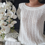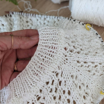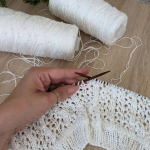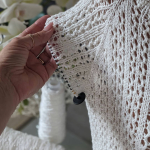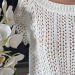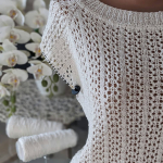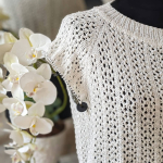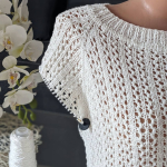 Розпочинаю новий літній проєкт — джемпер із м’якої білосніжної бавовни з вкрапленнями намистинок, які виблискують, немов перлини на сонці. Пряжа має легкий шовковистий блиск, приємна на дотик і чудово лягає в полотно. В’язати з неї — справжнє задоволення!