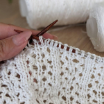 Після горловини переходимо на спиці №4. Основне полотно будемо в’язати ажурним візерунком.