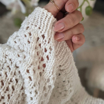 Модель — жіночна, з нотками романтики, вільного силуету, зручною посадкою та регланом зверху. Джемпер в’яжеться зверху донизу безшовним способом — це дуже зручно, адже можна легко приміряти виріб у процесі й за потреби скоригувати довжину або ширину.