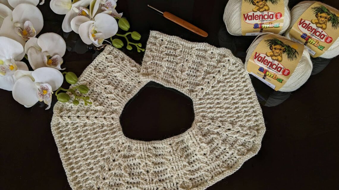 Візерунки. Основна частина (спинка/пілочки) – рельєфний візерунок у вигляді аранів чи переплетень, рукава – чергування випуклого та звичайного стовпчиків з одним накидом (процес в’язання схожий на візерунок спицями “Рис”), лінії реглану – аран/коса гачком. Усі необхідні схеми додаю в галереї нижче.