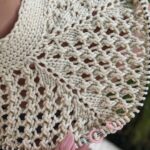 Після вив’язування кокетки, на петлях спинки +2 крайові петлі (ліній реглана), у мене це 78+2=80 петель, виконуємо азіатський росток – 8 рядів ажурного візерунка.