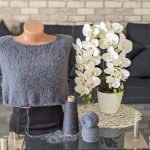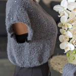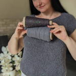 Пропоную вашій увазі незвичайне та стильне поєднання еко-норки та пряжі з пайєтками на бавовняній основі — ідеальне рішення для в’язання елегантної та комфортної футболки спицями.