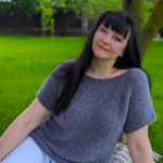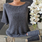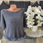 Модель футболки — лаконічна та водночас вишукана. Це класичний реглан зверху, що в’яжеться єдиним полотном без швів. Прямий силует забезпечує універсальність та комфорт у носінні, підходить до різних типів фігури й легко комбінується з іншими елементами гардеробу. Футболка виконана виключно лицьовою гладдю — жодних візерунків, лише чисте, рівне полотно, яке підкреслює фактурну гру ниток та м’яке мерехтіння пайєток.