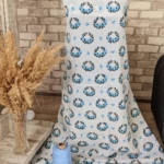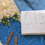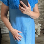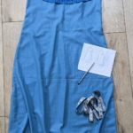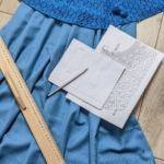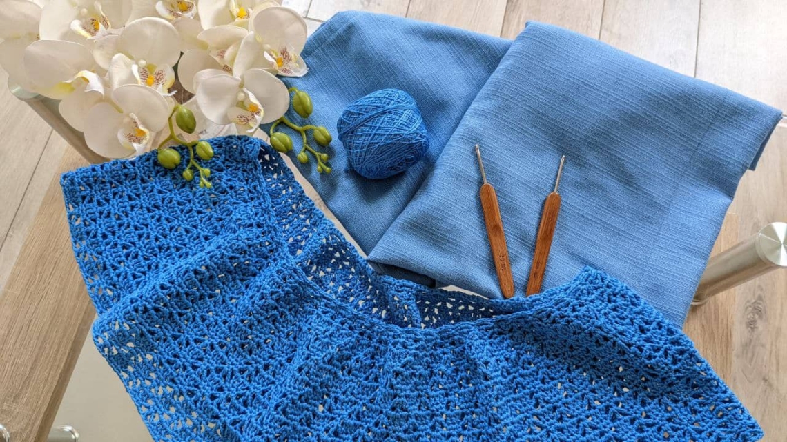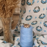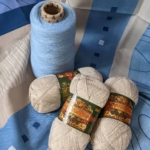 Я вирішила розпочати з останнього варіанту – тканина та пряжа блакитного кольору.