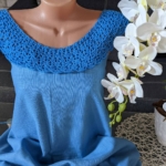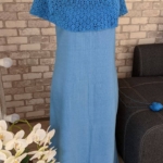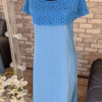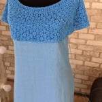 Має бути комбінована сукня. Верхня частина, кокетка, зв’язана гачком. Від грудей вниз – тканина.
