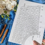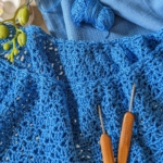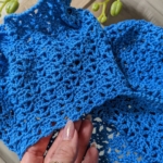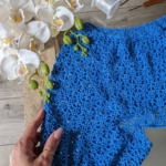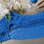 Початковий ряд горловини складається з 50 арочок. Далі, від них починаємо в’язати ажурний візерунок гачком згідно схеми, всього 50 рапортів.