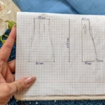 Далі переходимо до моделювання та конструювання викрійки на тканині. Вирізаю дві деталі. Виконую бокові шви, обробляю нижній та верхній зріз. На спинці виконую дві вертикальні виточки.