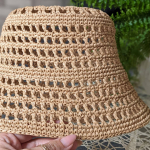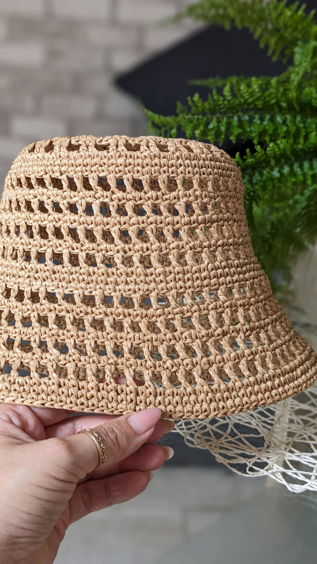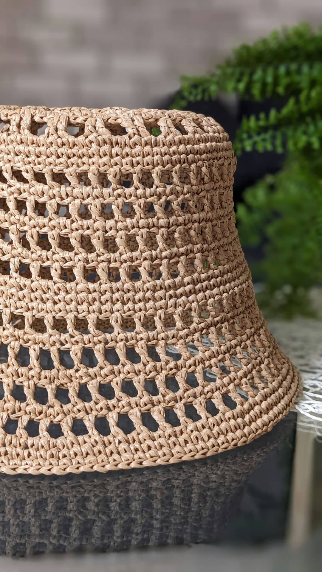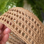 Літній сезон — найкращий час для легких, натуральних аксесуарів. Ця панамка в’язана гачком із рафії відтінку крафт — теплого, природного кольору, що нагадує суху траву або стигле жито. Виріб вийшов легким, зручним і стильним — ідеальним для сонячних прогулянок, подорожей чи відпочинку на природі.