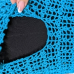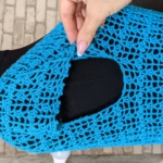 Через 15 см от подрезовпродолжаю вязать прямым и ровным полотном, но для постепенного расширения полотна перехожу на крючок №2,5, а еще через 15 см – на крючок №2,75.