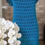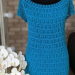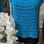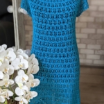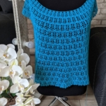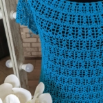 Изначально хотела сделать разделительную полосу на талии, но передумала. Распустила и продолжила вязание ажурным узором на необходимую длину изделия.