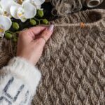 По краю пройми для кожного рукава набираємо 64 петлі. Рапорт візерунка 8 петель, 64/8 = 8 рапортів. В’яжемо полотно рукавів по колу до необхідної довжини.