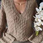 Окрасою пуловера є простий, об’ємний та рельєфний візерунок із джгутиків. Він легко адаптується при в’язанні по колу та зворотніми рядками. Візерунок складається з двох смужок, на яких формуються “джгутики” в шаховому порядку. Рапорт – 8 петель.