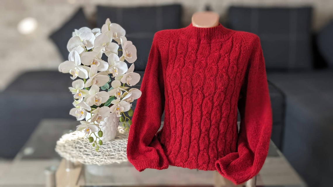 Новий процес — нова історія. Розпочала роботу над светром Арен / Aren — теплим, фактурним і сучасним. Його головна особливість — рельєфні арани, які створюють виразне полотно, сповнене глибини та об’єму. Насичений червоний колір додає виробу енергії, робить його яскравим акцентом і водночас теплим, затишним елементом гардеробу.